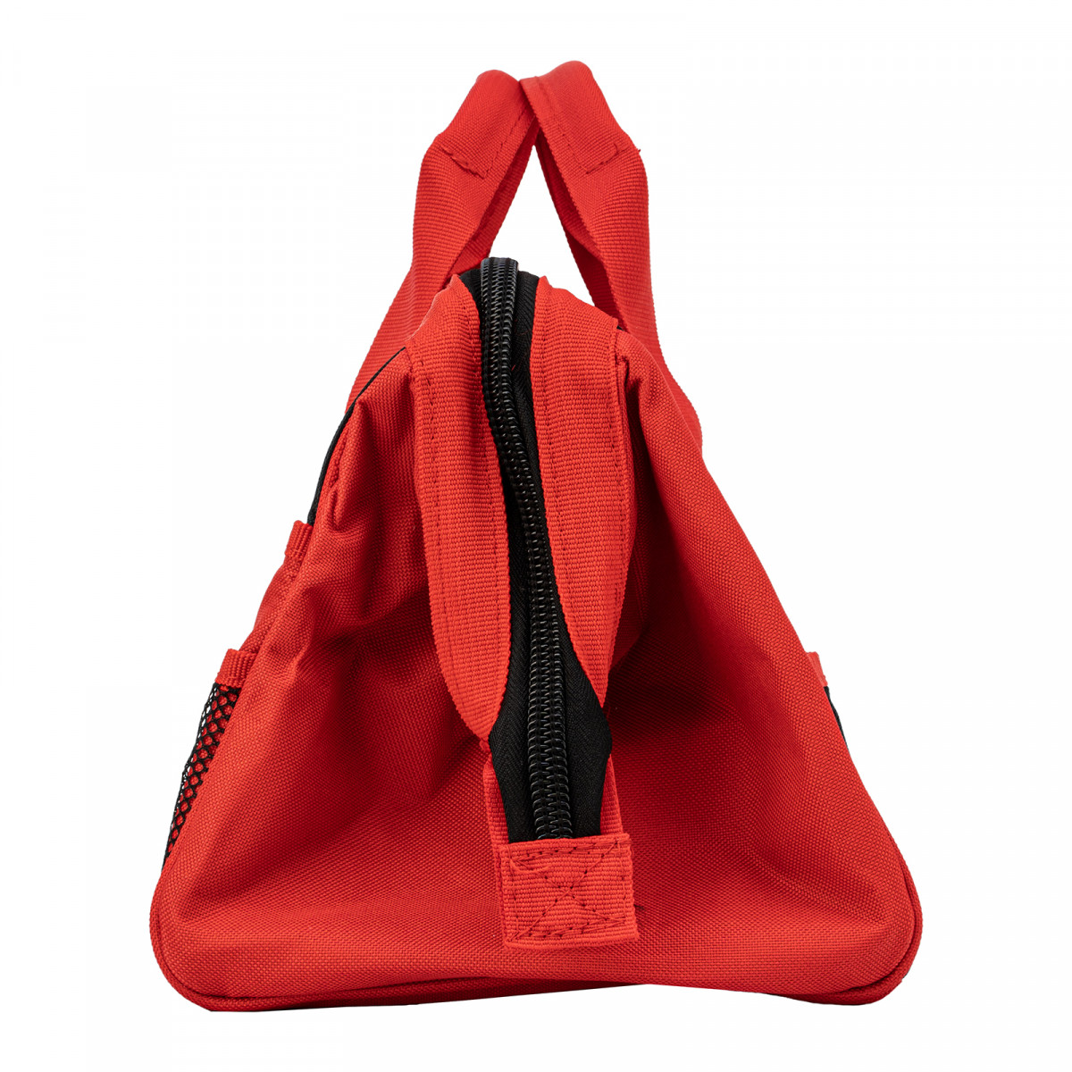 Сумка Matrix 90259 с 18 карманами, размером 320 х 215 х 250 мм, предназначена для транспортировки и хранения слесарных или столярных инструментов. Может использоваться для перевозки автопринадлежностей. В 18 карманах и вместительном основном отделении можно разместить инструменты разного размера. Сумка пригодится монтажнику, слесарю, строителю, будет полезна дома и в поездке.