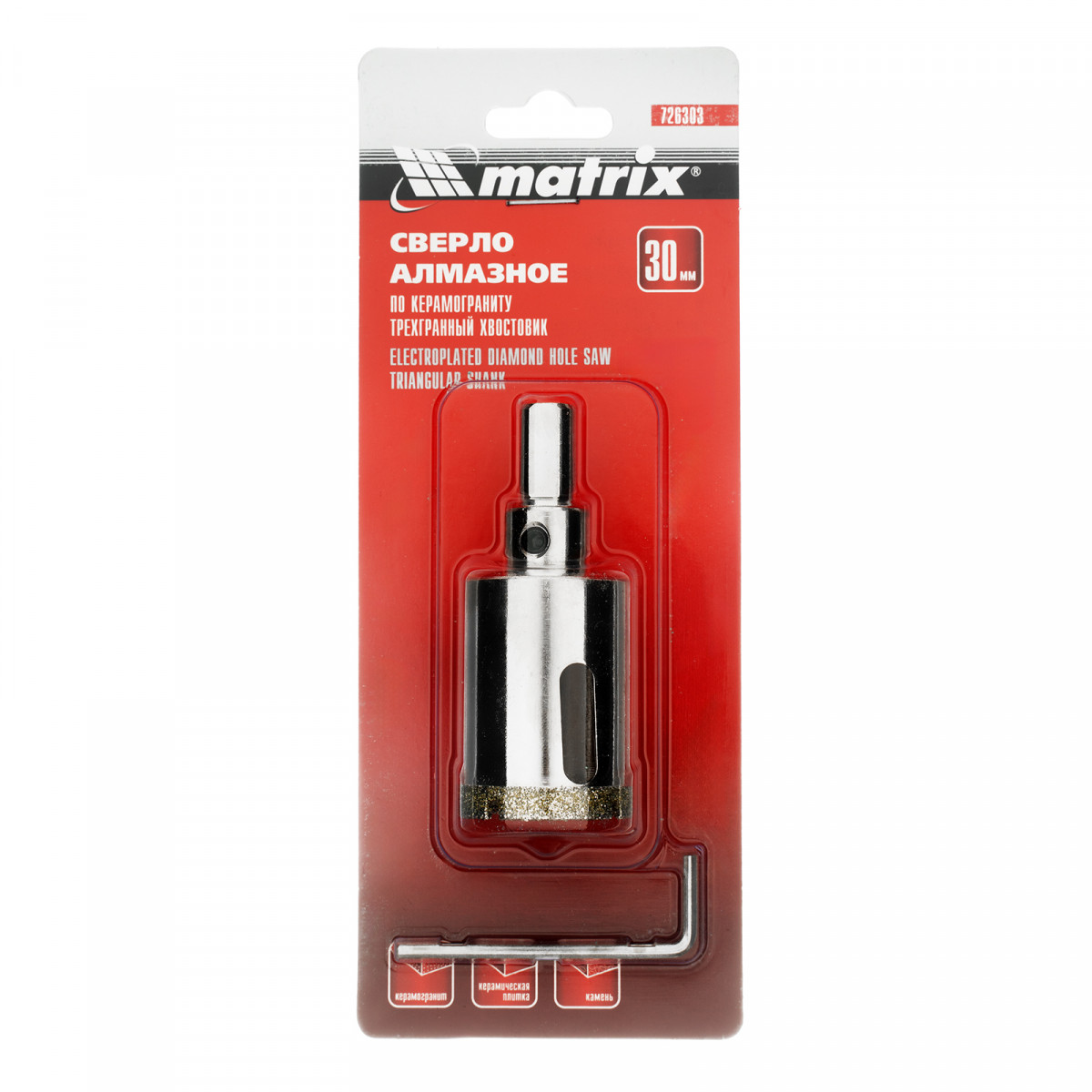 Сверло алмазное по керамограниту, 30 х 67 мм, трехгранный хвостовик Matrix