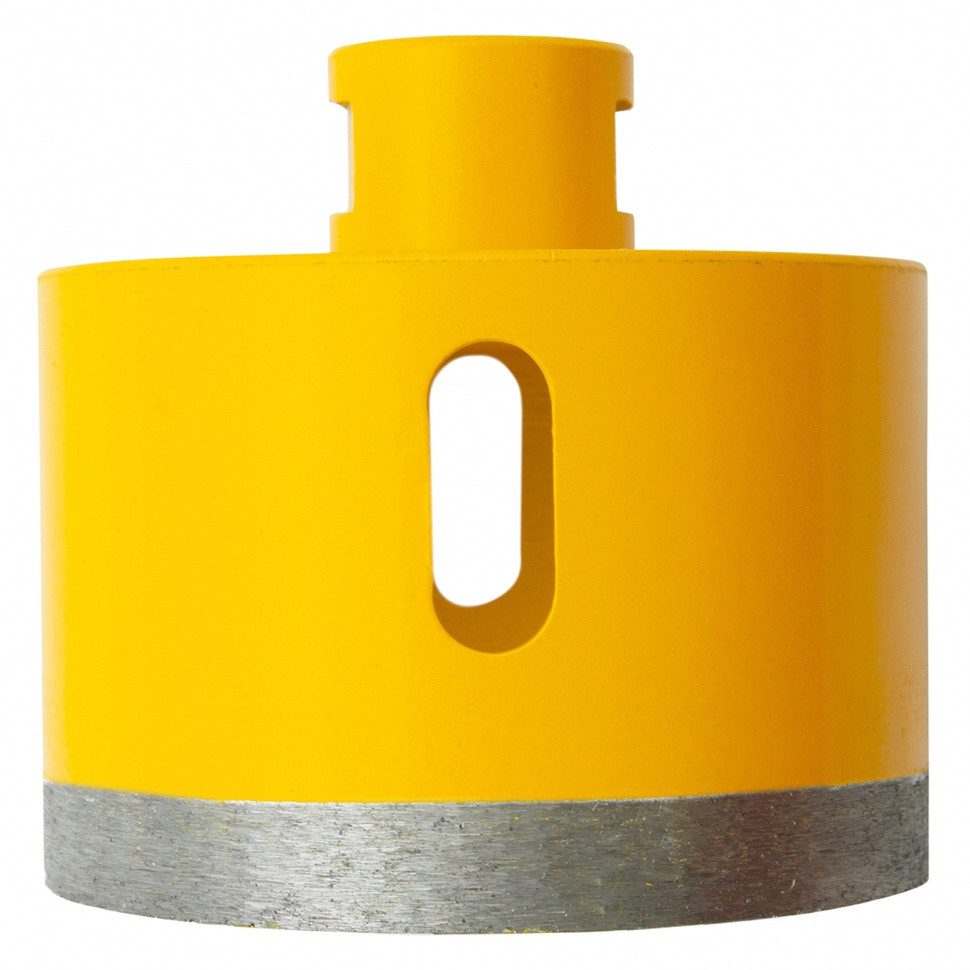 Алмазное сверло Denzel 72696 диаметром 82 мм, с резьбой М14, предназначено для «мокрого» сверления по керамограниту, мрамору, стеклу и керамической плитке. Позволяет получать ровные отверстия без сколов, используется для проведения ремонтных и отделочных работ. Сверло (коронку) устанавливают на вал углошлифовальной машины, благодаря чему скорость сверления увеличивается в несколько раз по сравнению с дрелью или шуруповертом. Применение водяного охлаждения повышает срок службы оснастки. Чтобы точно позиционировать сверло при сверлении дрелью, рекомендуется использовать кондуктор (арт. 72830).