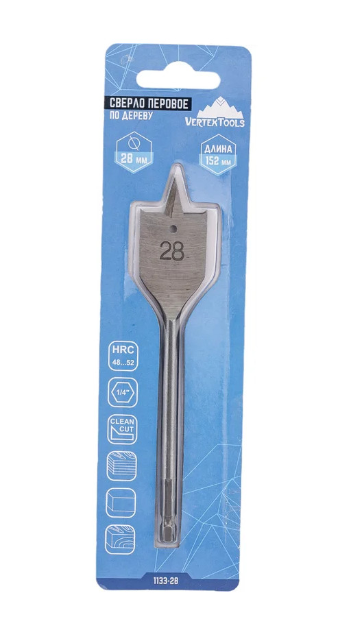 Сверло по дереву перовые, шестигранный хвостовик 28х152 VERTEXTOOLS