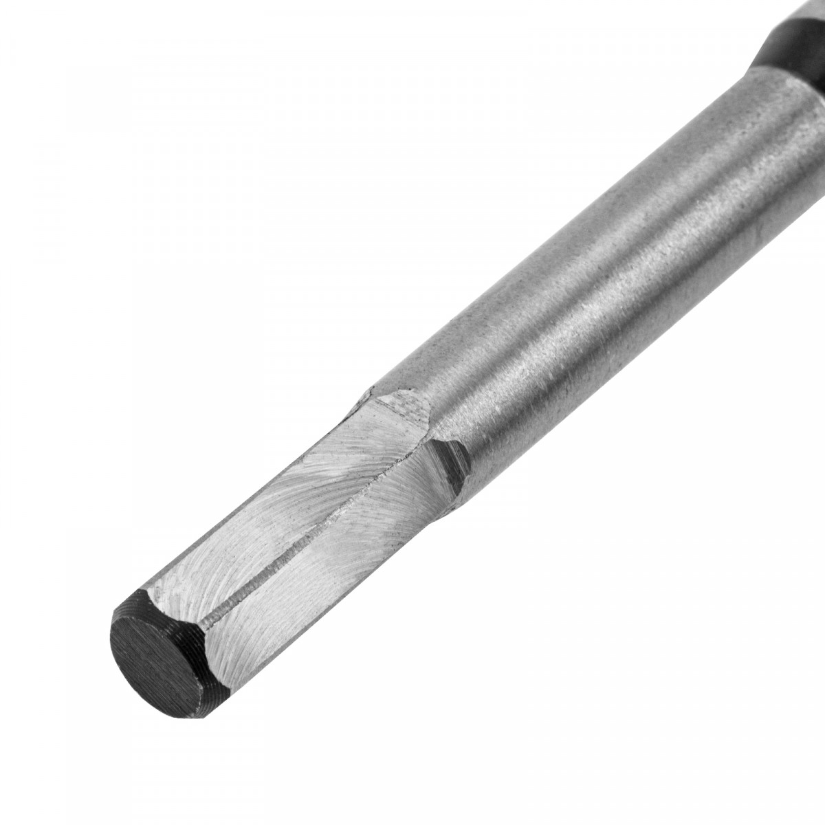 • Прочность и износостойкость — сверло изготовлено из инструментальной стали, а режущая часть закалена до твердости 40 HRC.