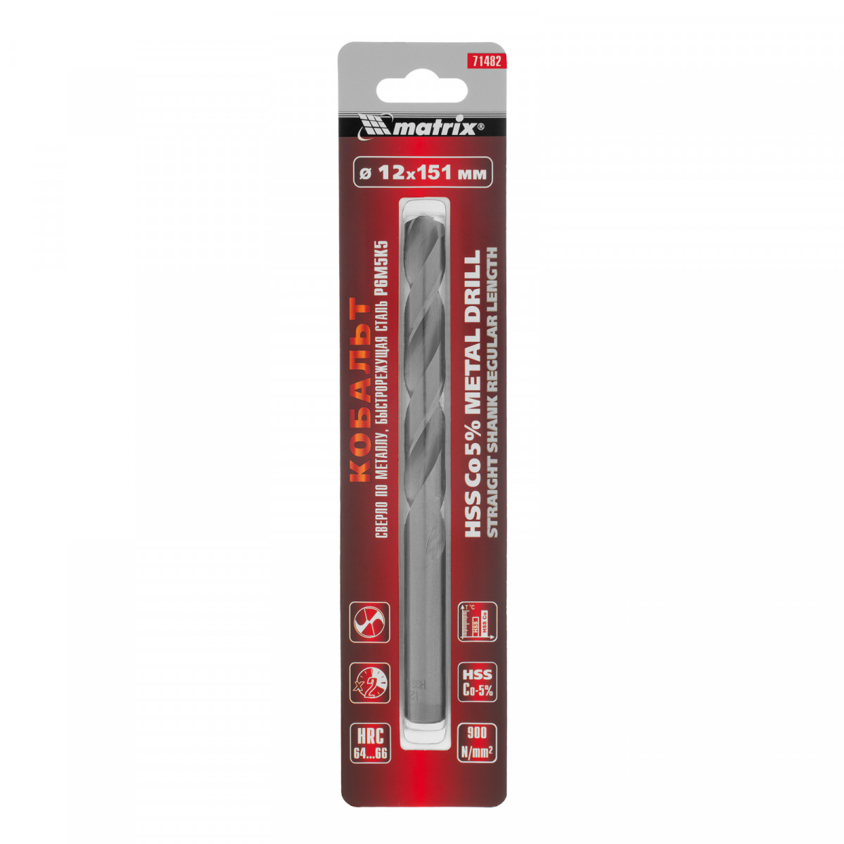 Сверло Matrix 71482 диаметром 12 мм, из стали HSS Co-5%, имеет угол заточки 135°, оптимальный для сверления легированных и цветных металлов. Подходит для профессионального использования на строительной площадке.