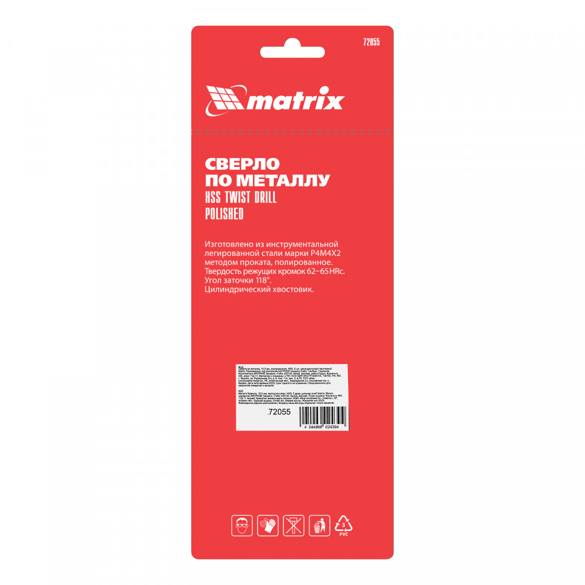 Сверло по металлу, 15.5 мм, полированное, HSS, 5 шт, цилиндрический хвостовик Matrix