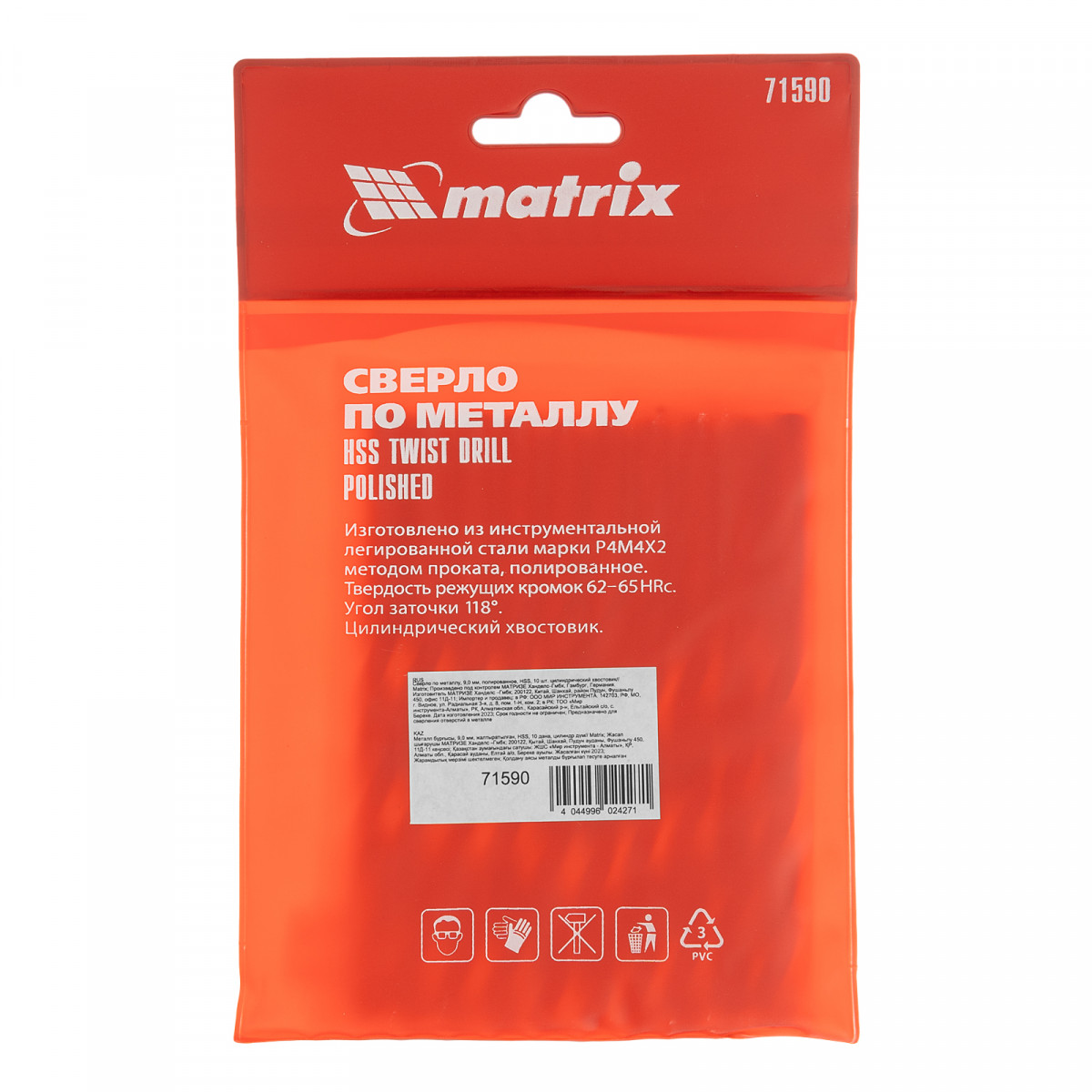 Сверло по металлу, 9 мм, полированное, HSS, 10 шт, цилиндрический хвостовик Matrix