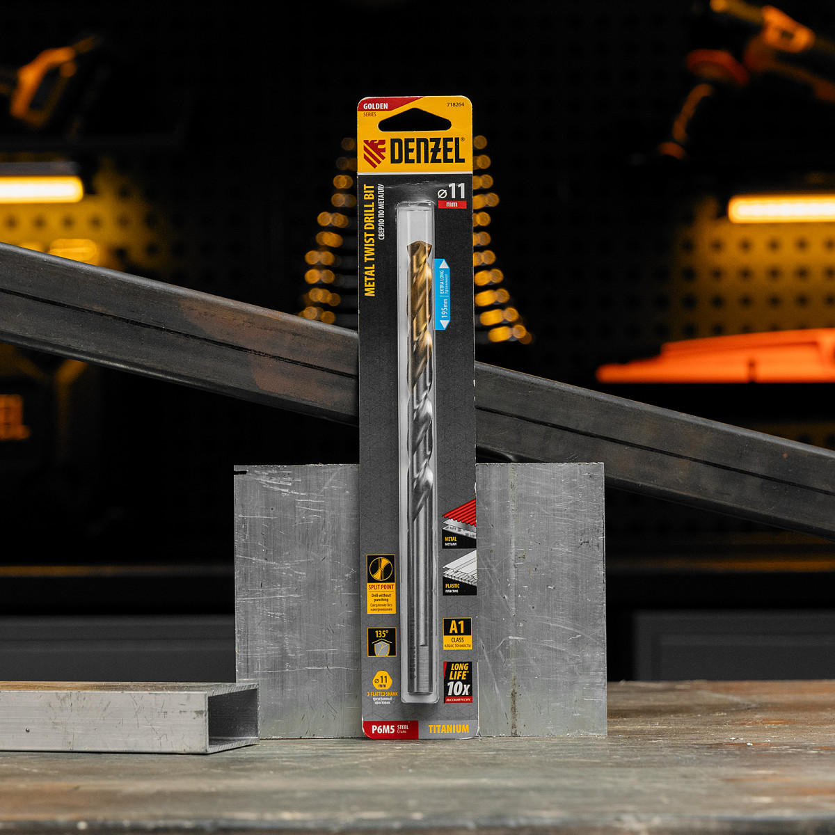 Сверло спиральное по металлу 11 х 195 мм, Р6М5, Golden Tip, удлиненное Denzel