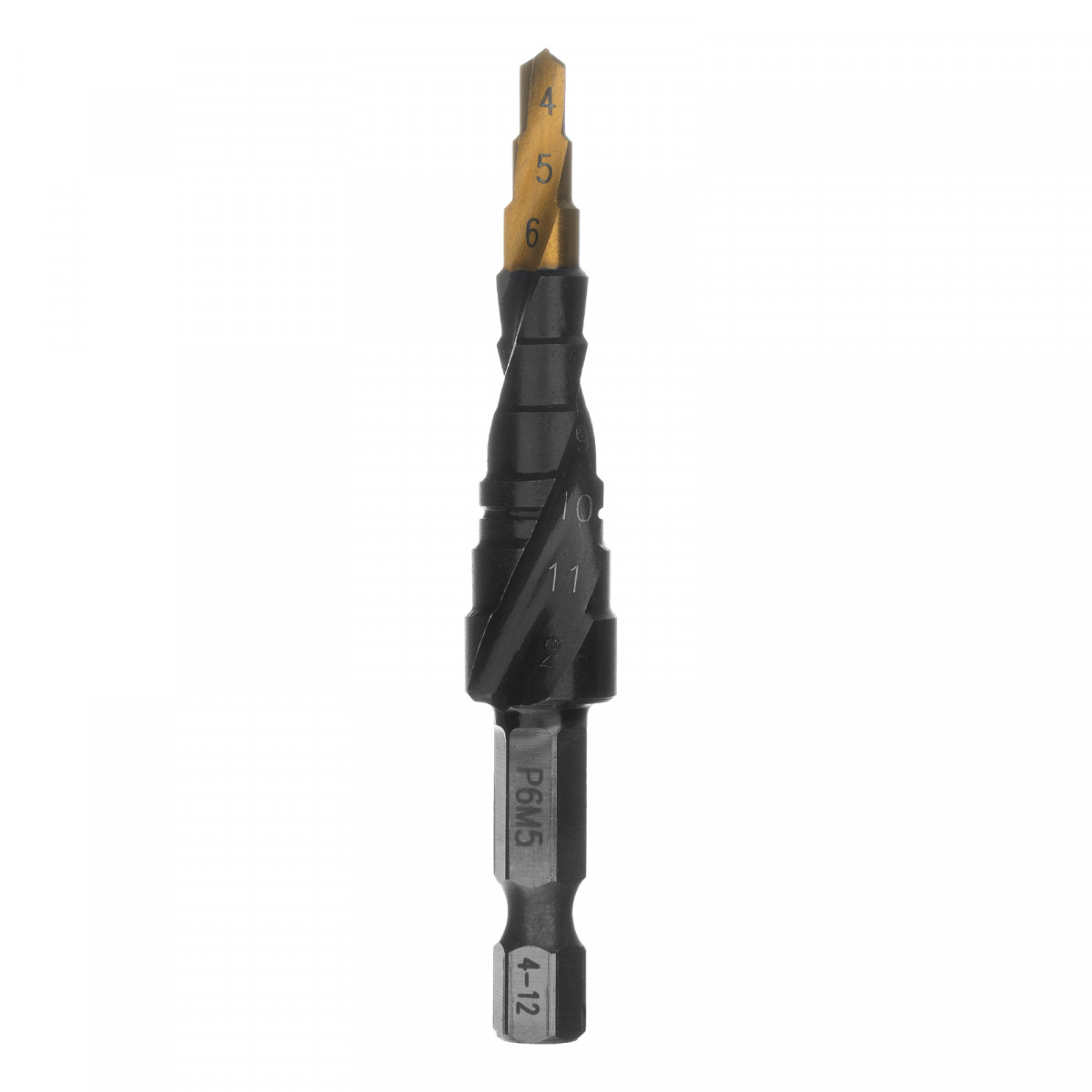 Сверло ступенчатое 4-5-6-7-8-9-10-11-12 мм, Р6М5, 6-гр. хвостовик Denzel