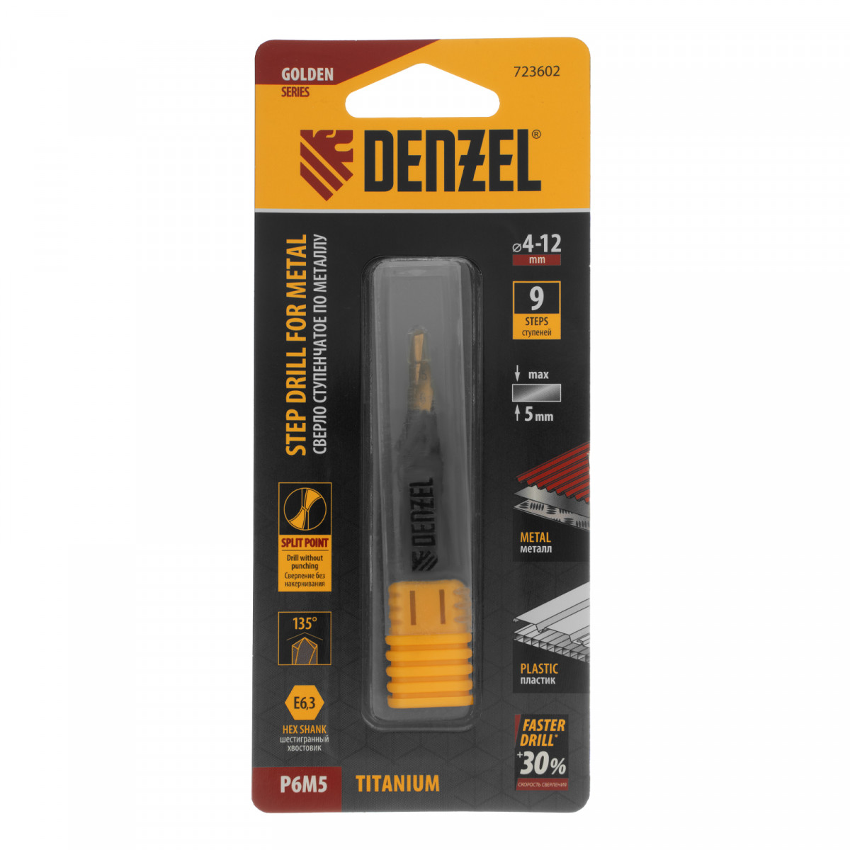 Ступенчатое сверло Denzel 723602 из стали P6M5, с 6-гранным хвостовиком, предназначено для сверления отверстий диаметром от 4 до 12 мм в сталях, цветных металлах и пластике. Избавляет от необходимости иметь при себе целый набор традиционных сверл. Позволяет получать отверстия с ровными краями и уже снятой фаской под гайку или болт. Оснастке присвоен класс точности A1. Сверло пригодится дома и в мастерской.