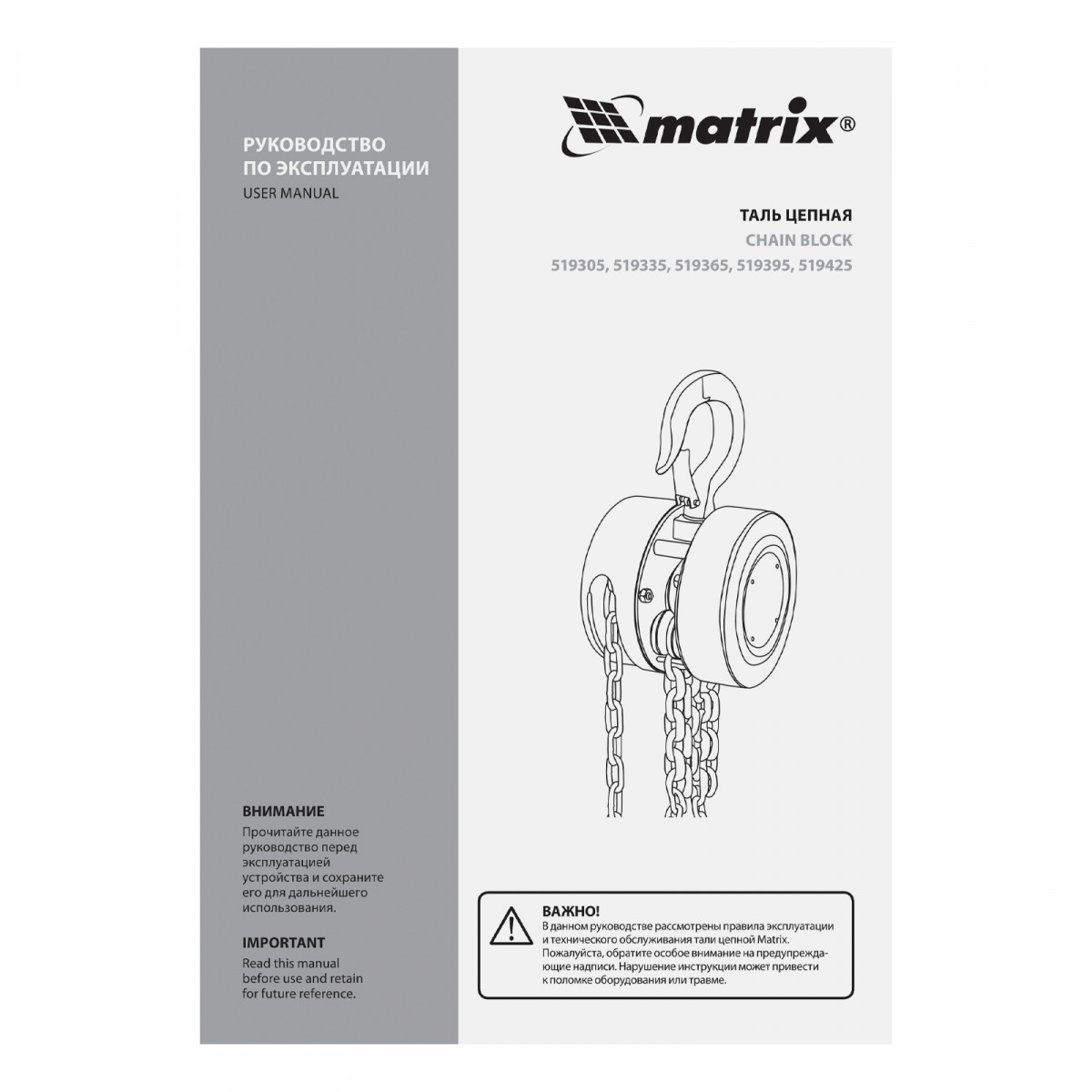 Таль цепная, 2 т, H подъема 2.5 м, расстояние между крюками 380 мм Matrix