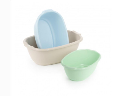 Таз имеет овальную форму, которая позволяет при таком большом литраже быть изделию более компактным и не занимать много места. Таз оснащен ручками для более удобной переноски. Несмотря на легкий вес, имеет очень прочную конструкцию. Его легко мыть, при этом материал не впитывает вещества, которые вредят здоровью.Подходит для выполнения разных хозяйственных целей.