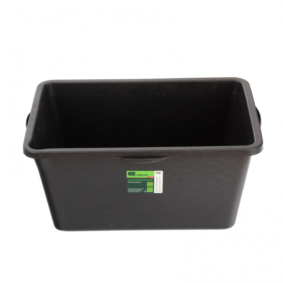 Прямоугольный строительный таз Сибртех 814445 объемом 60 л используется для приготовления штукатурных, шпаклевочных, красящих, клеевых растворов при проведении ремонтных и отделочных работ. Пригодится таз и в быту — в нем удобно хранить и перемещать сыпучие материалы.