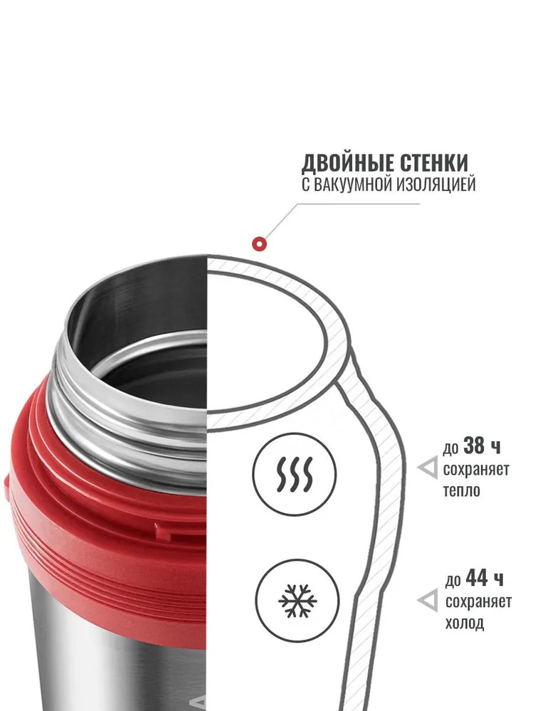 Имеет специальную универсальную пробку, которая изготовлена из прочного пластика. Она легко разбирается для мытья и обладает дополнительной теплоизоляцией.