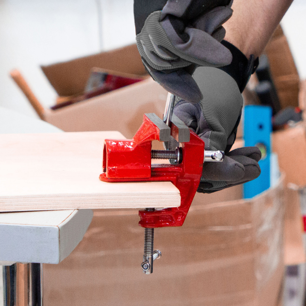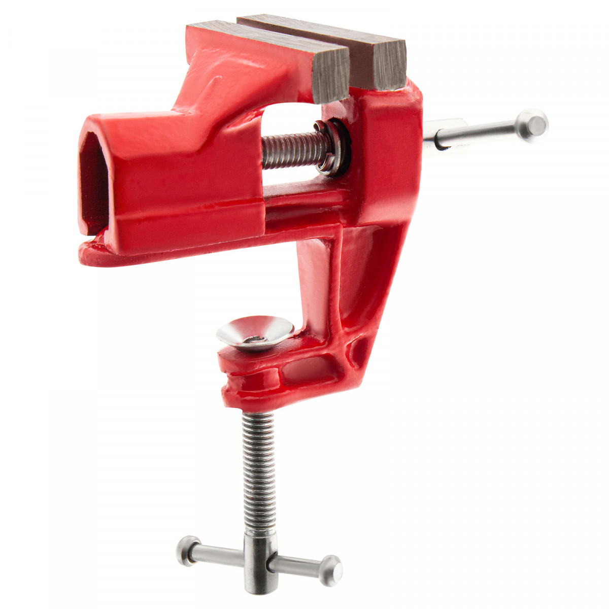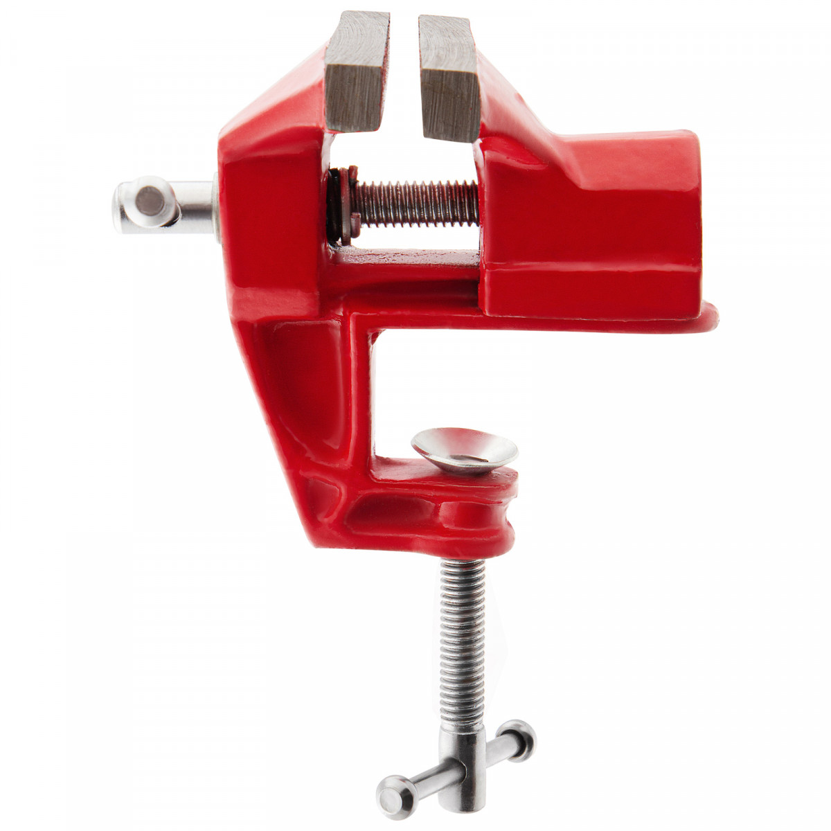- Простое использование — винтовой зажимной механизм позволяет легко устанавливать и снимать тиски с рабочего стола.