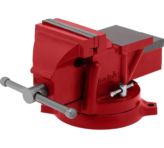 Наковальня на корпусе используется для выполнения мелких ударных операций. База прикрепляется к верстаку, корпус оснащен поворотным механизмом с прижимными винтами, позволяющим поворачивать тиски на любой угол и надежно фиксировать в выбранном положении.