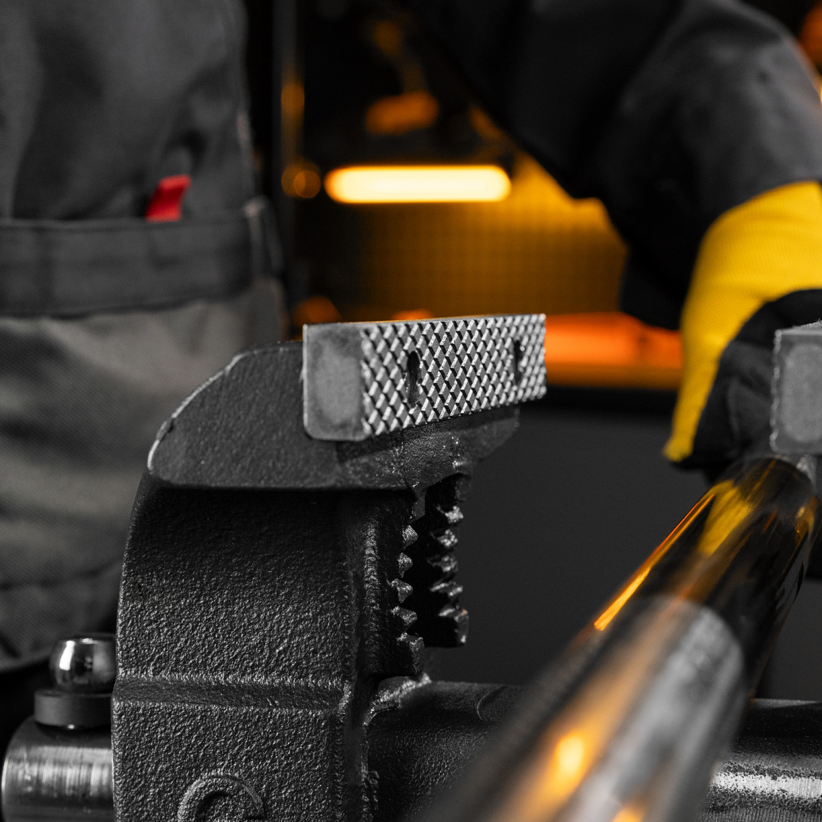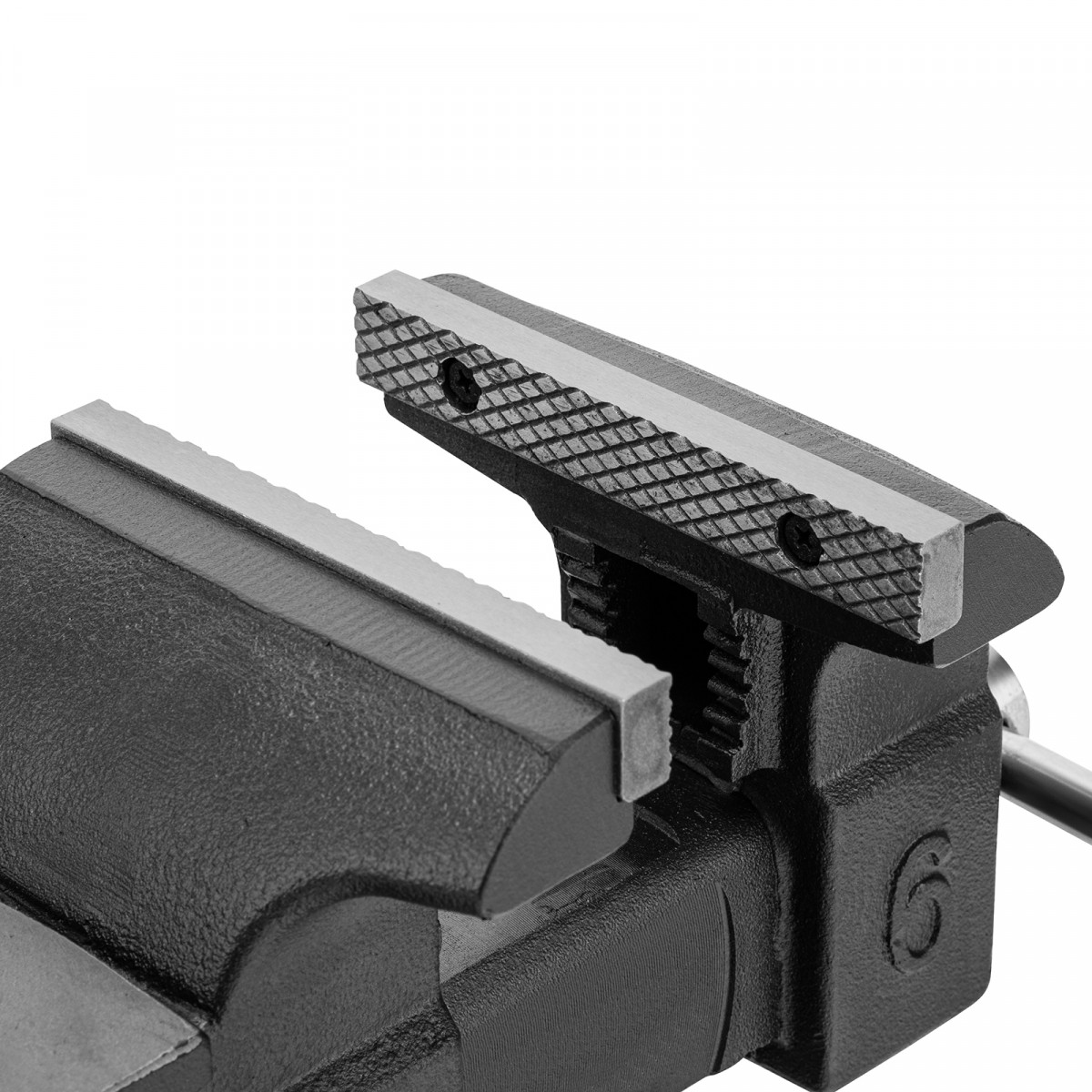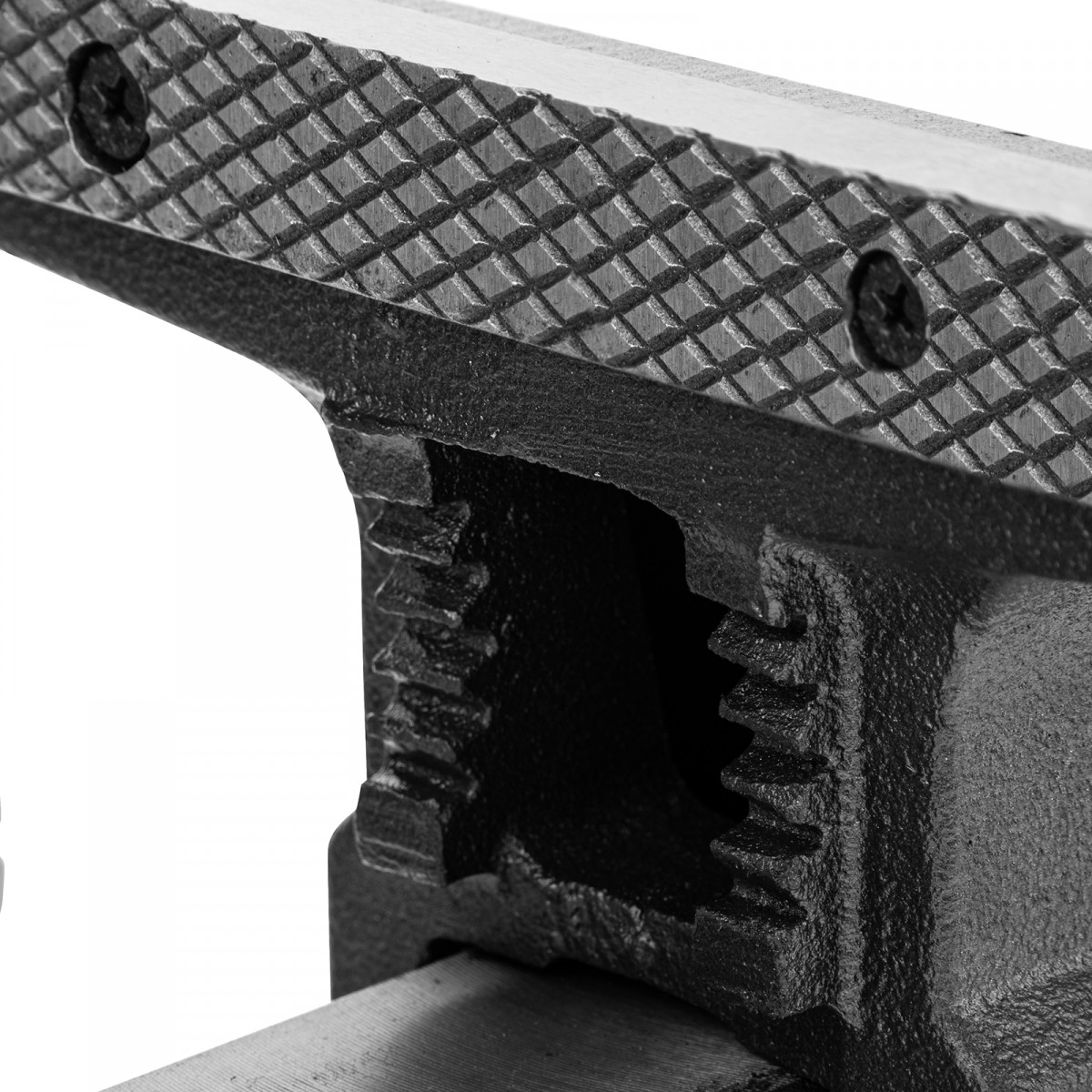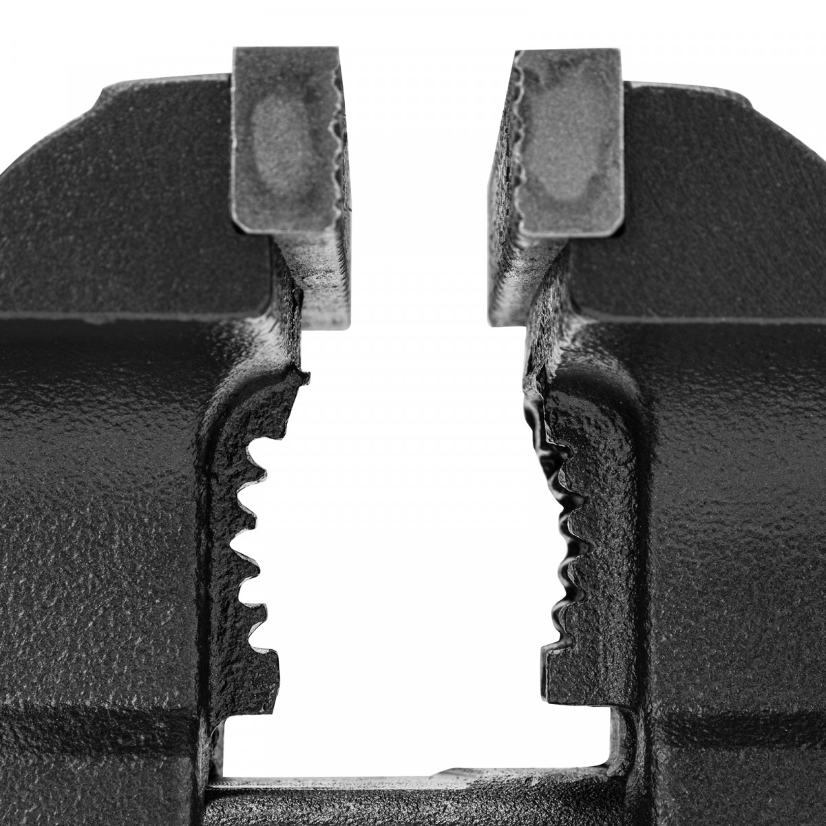 - Функциональность — тиски поворачиваются на 360°, что позволяет менять и выбирать позицию инструмента для удобной работы с заготовкой.