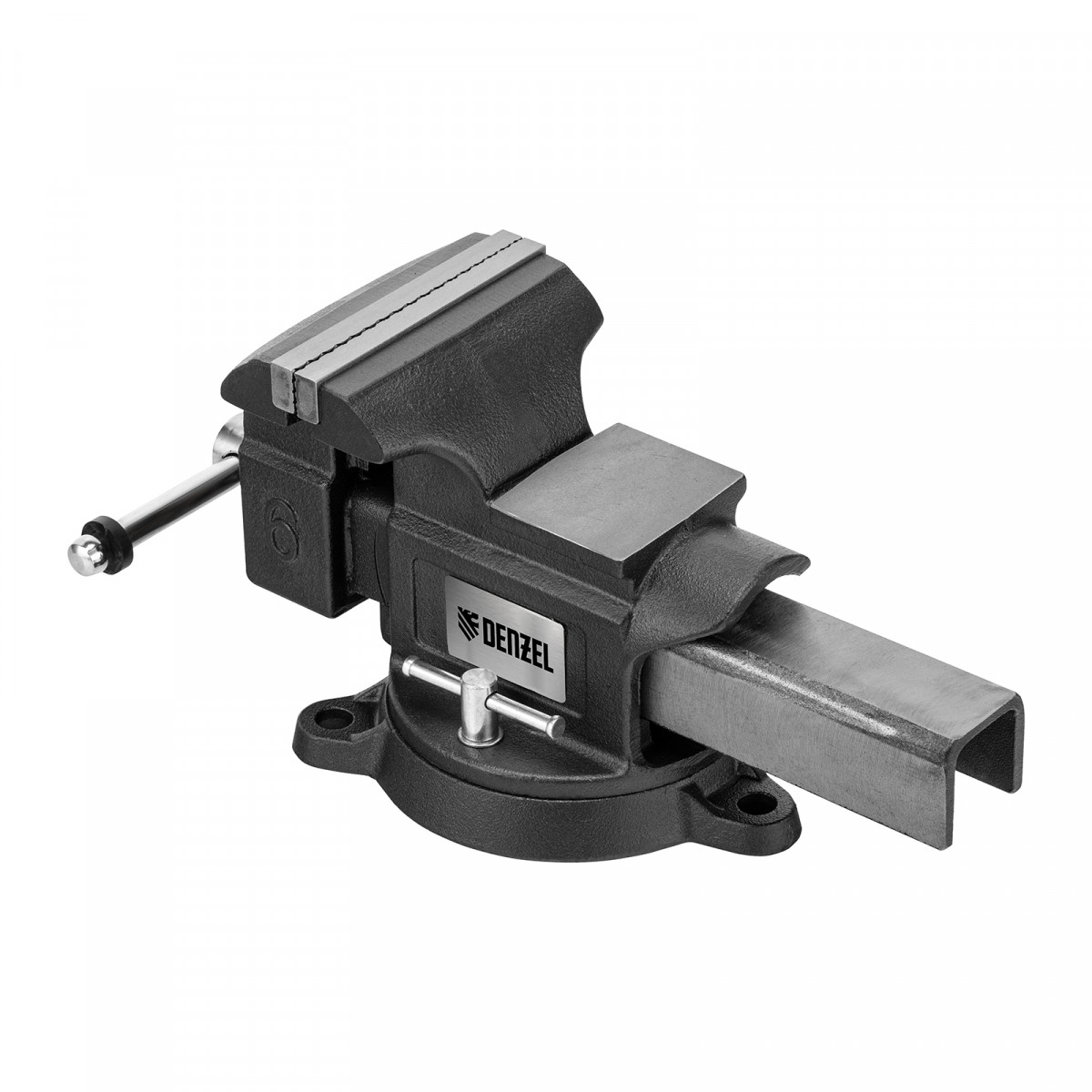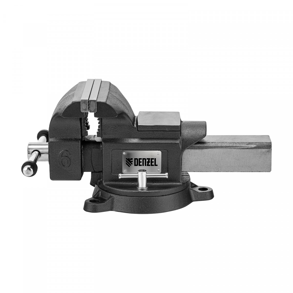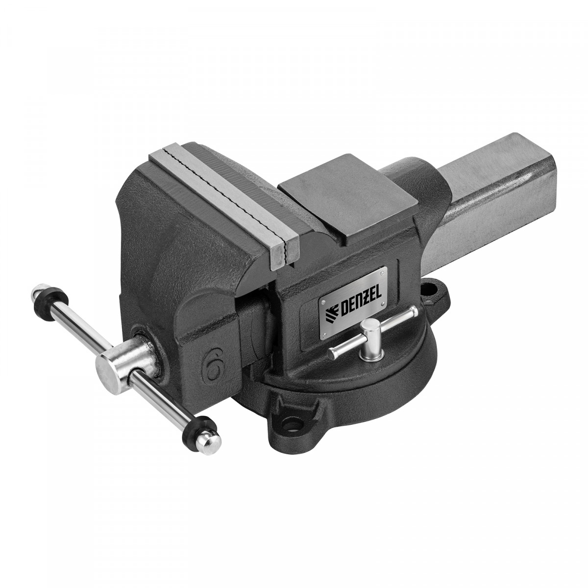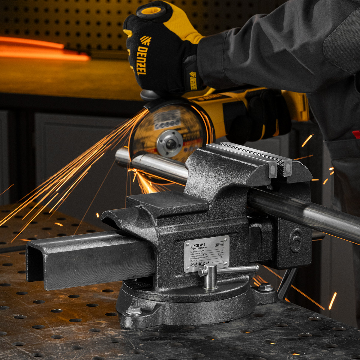 Тиски слесарные BVH-150, 150 мм, поворотные, стальная направляющая, с наковальней //Denzel