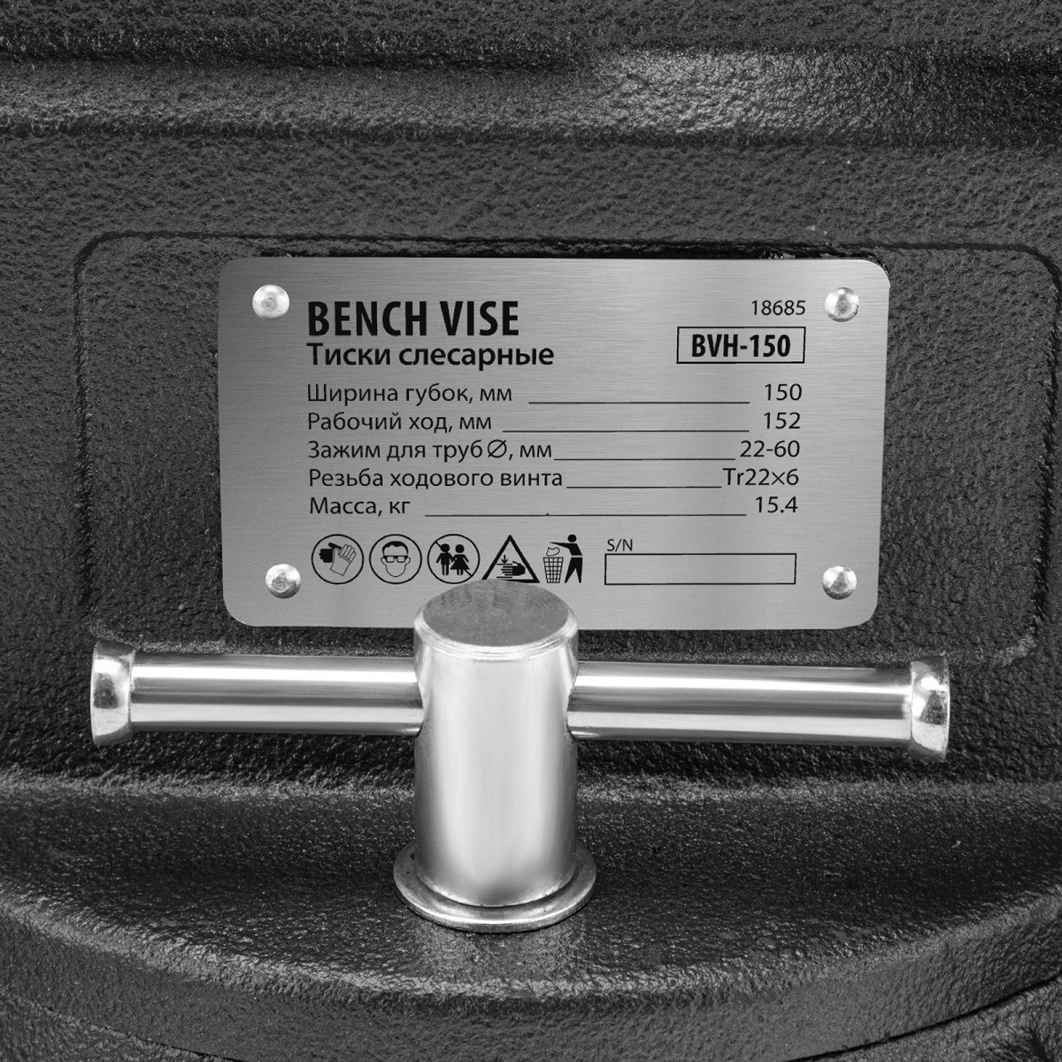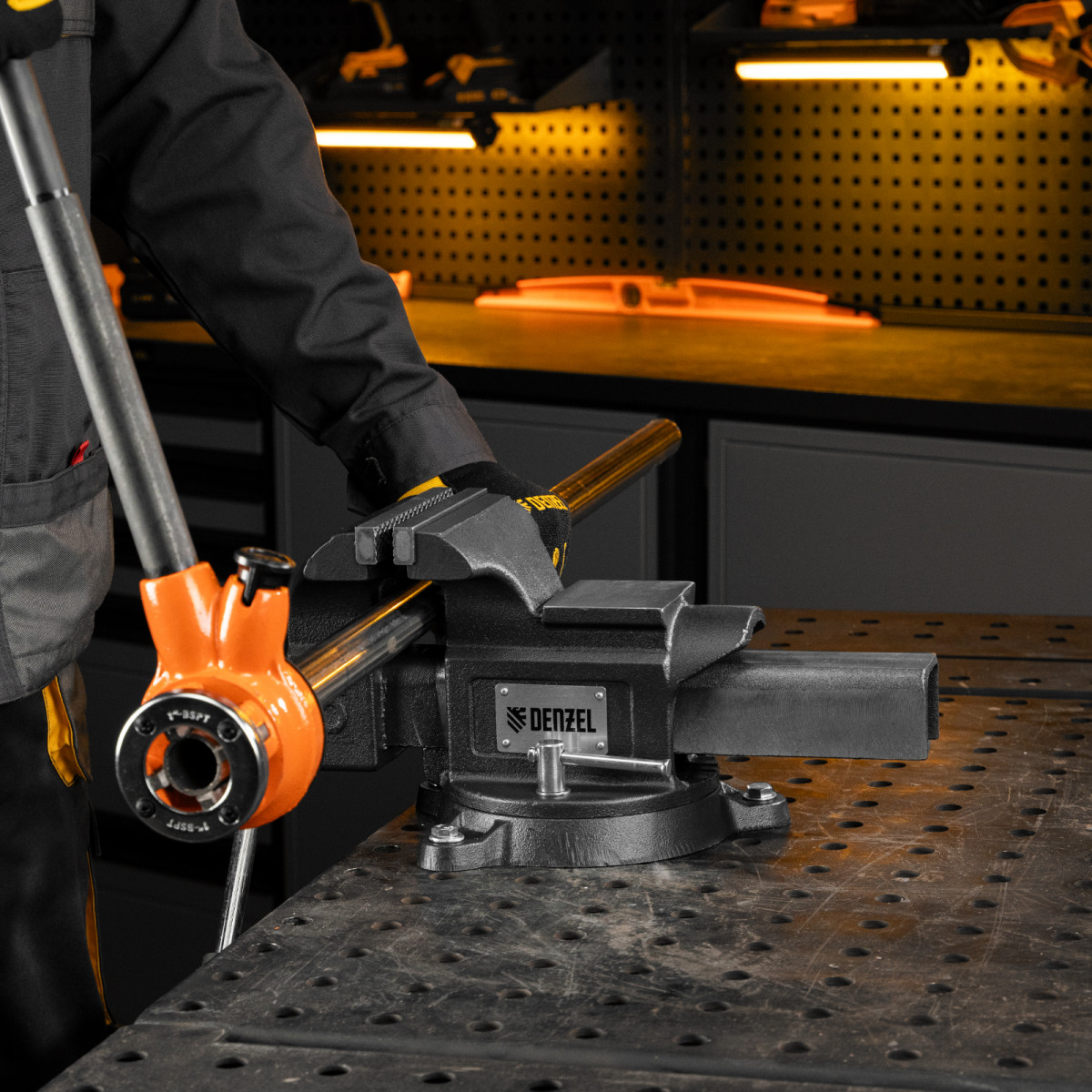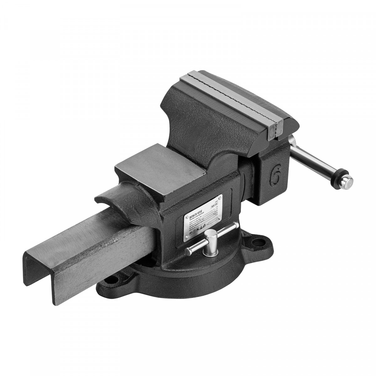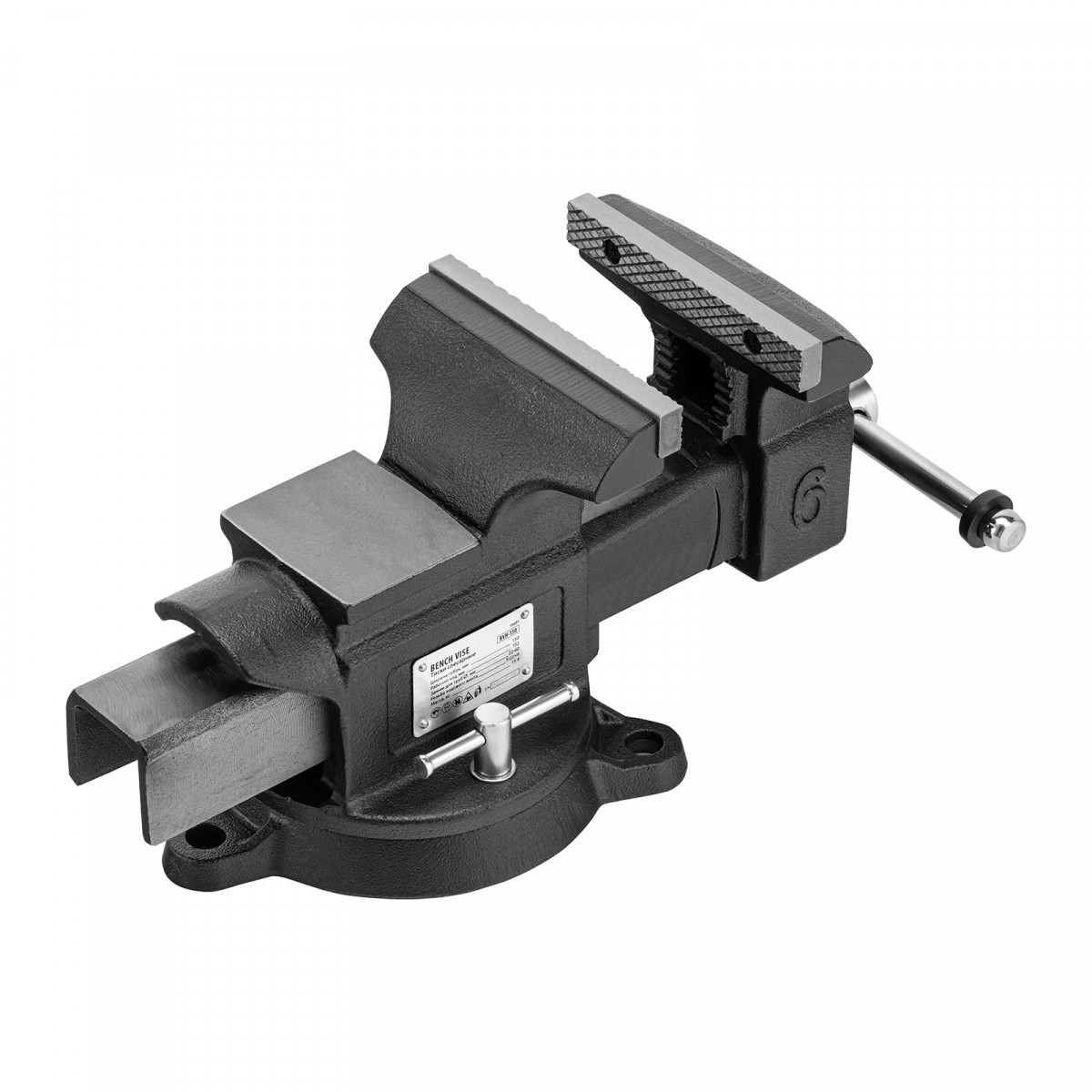 Тиски слесарные BVH-150, 150 мм, поворотные, стальная направляющая, с наковальней //Denzel