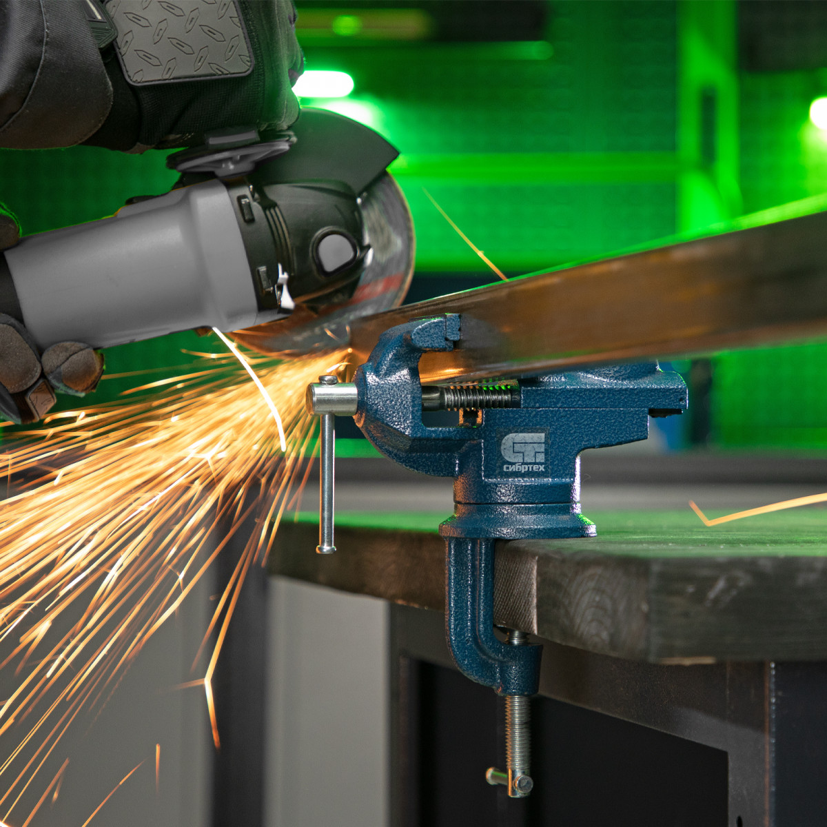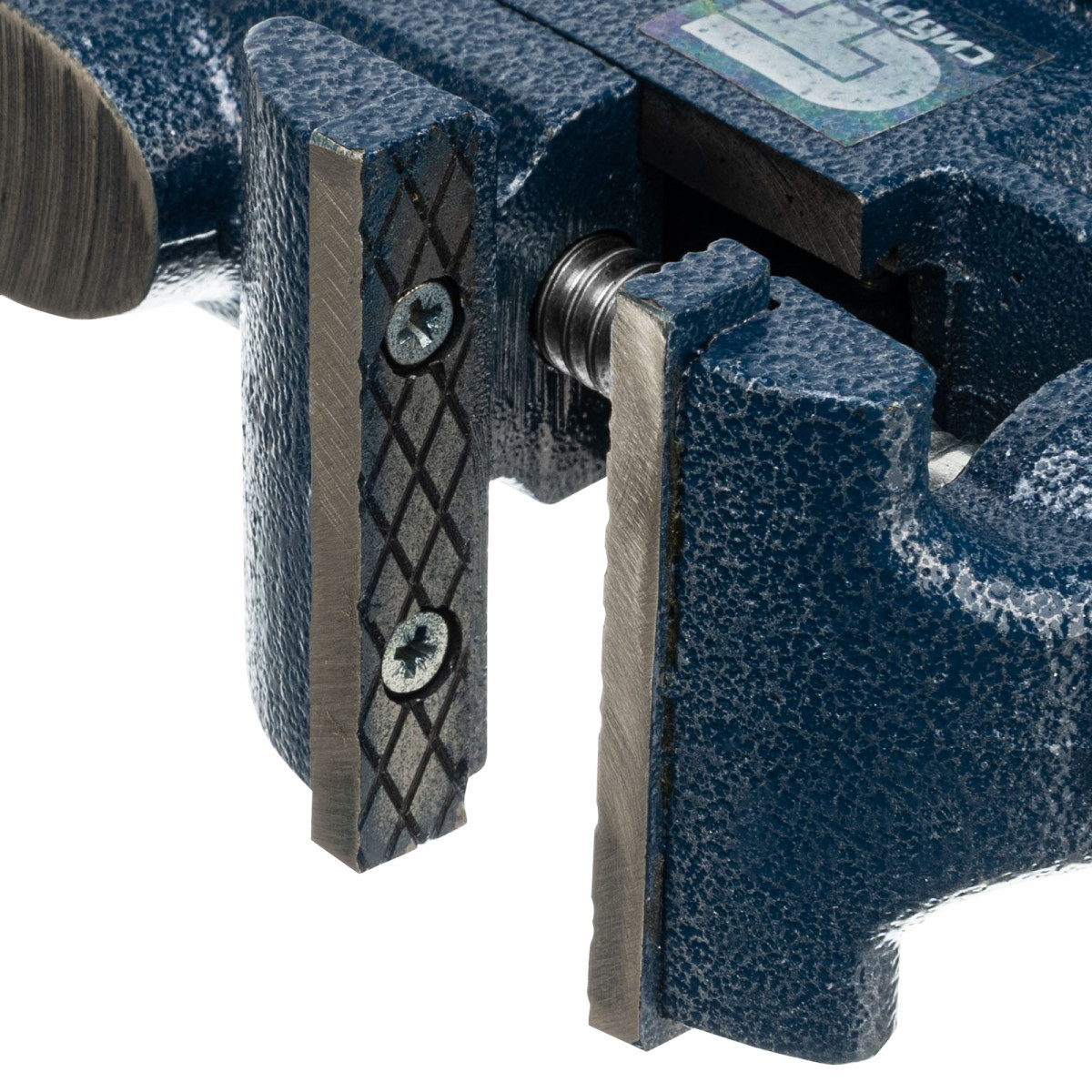 - Винтовой зажим позволяет быстро устанавливать и снимать тиски, поэтому их можно использовать на различных рабочих местах.