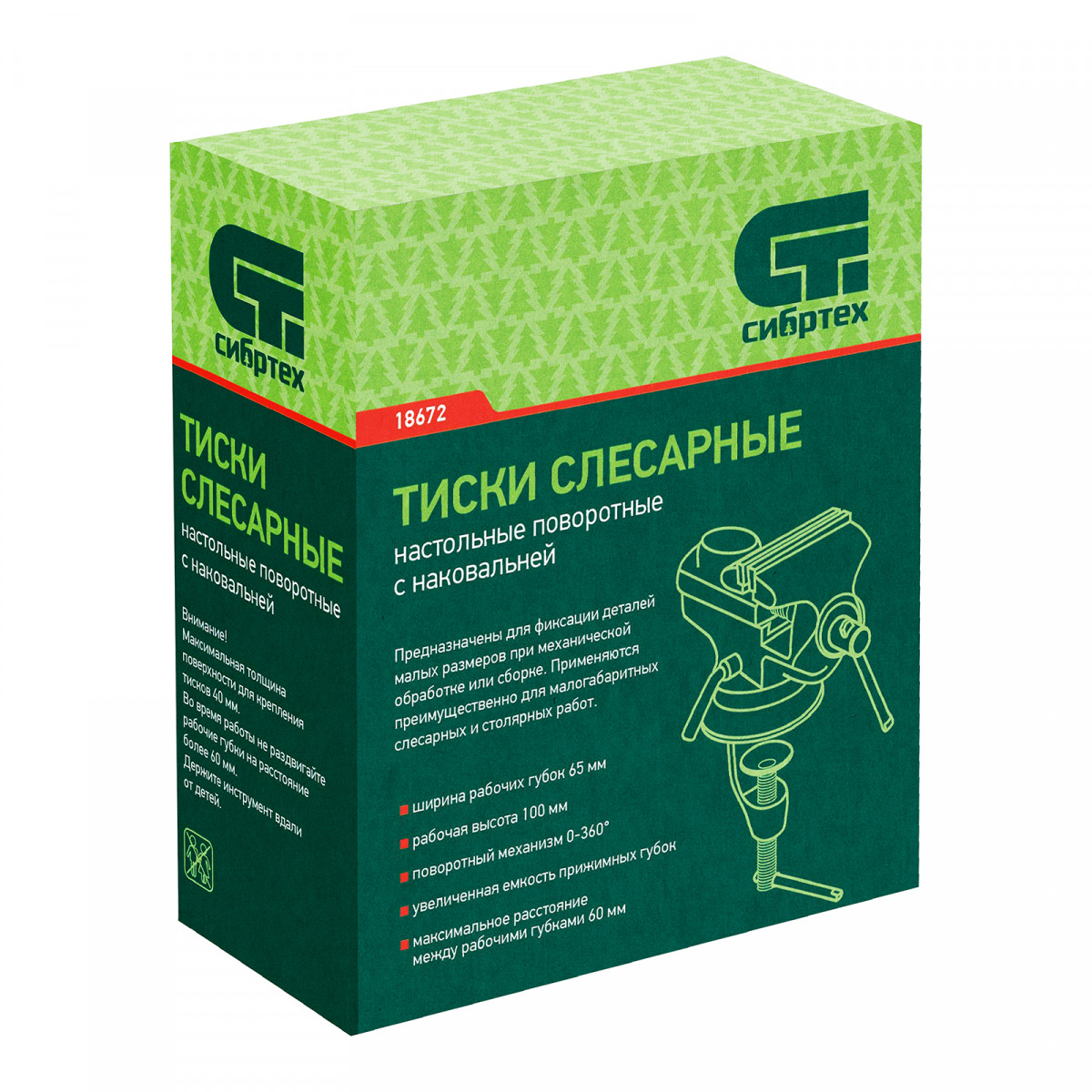 Тиски слесарные, настольные, поворотные, ширина рабочих губок 65 мм, наковальня Сибртех