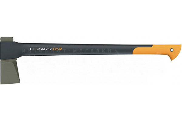 Профессиональный топор-колун Fiskars X25:Топор-колун Fiskars Х25 относится к профессиональной серии топоров Fiskars и разработан для работ по заготовке Дизайн лезвия позволяет не только эффективно колоть поленья, но и рубить дерево. Лезвие двойной закалки с антифрикционным покрытием.