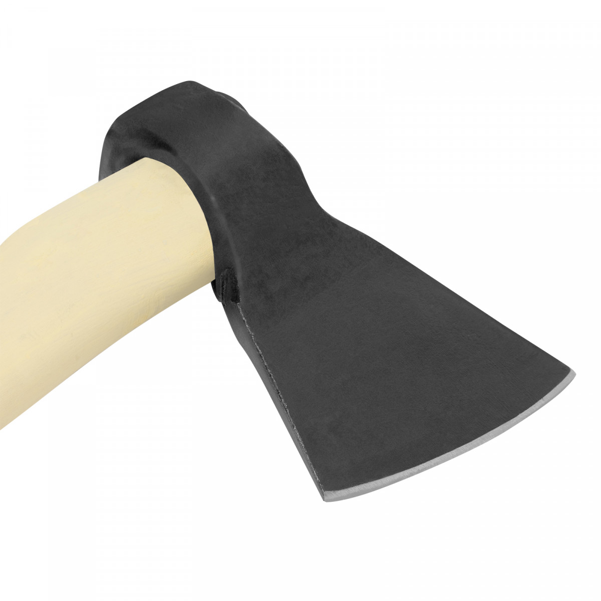 • Прочное соединение головы с топорищем — в месте всада установлен клин.