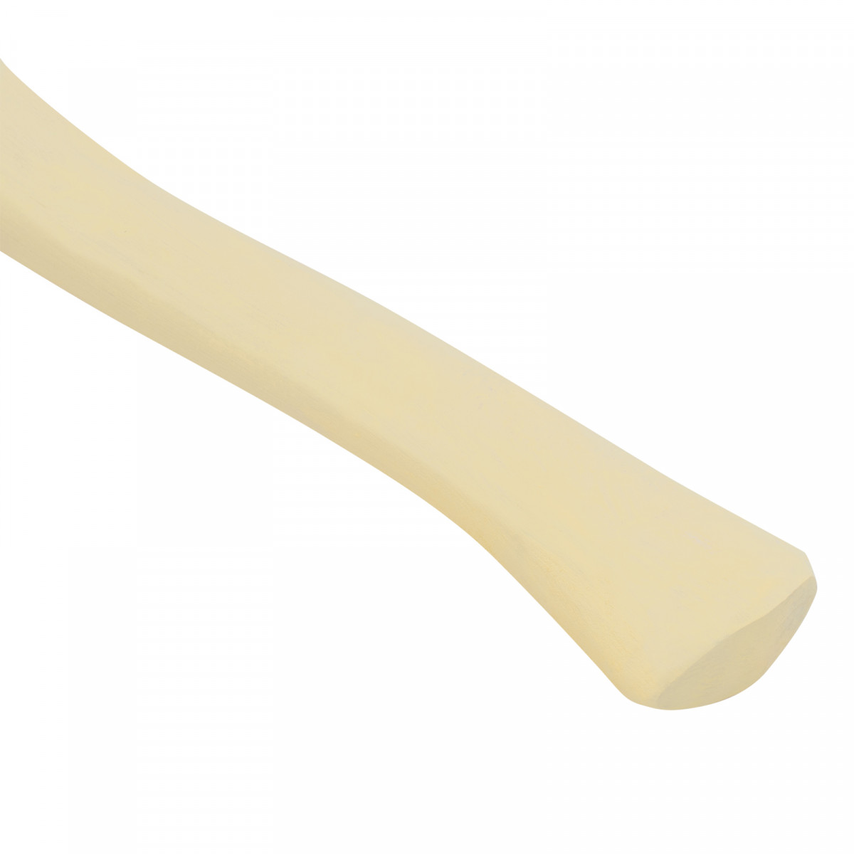 • Надежное топорище — оно изготовлено из древесины, отшлифовано, покрыто защитной пленкой и шпатлевкой.