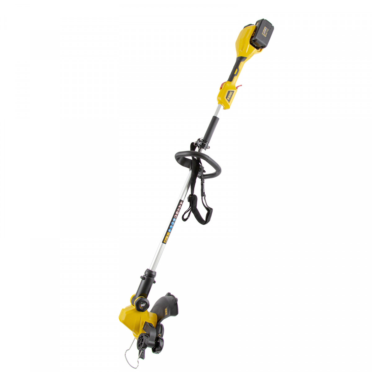 - Удобная настройка под рост пользователя — угол наклона триммера относительно штанги можно настроить, поэтому использовать его будет удобно любому человеку.