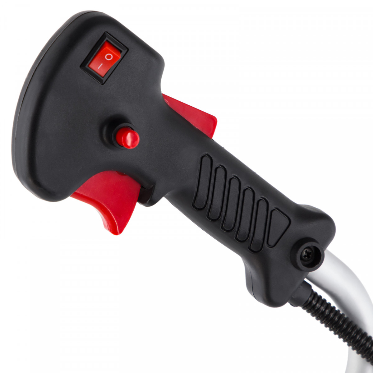 - Небольшой вес 6,5 кг — триммер легко удерживать и перемещать по рабочей площадке.