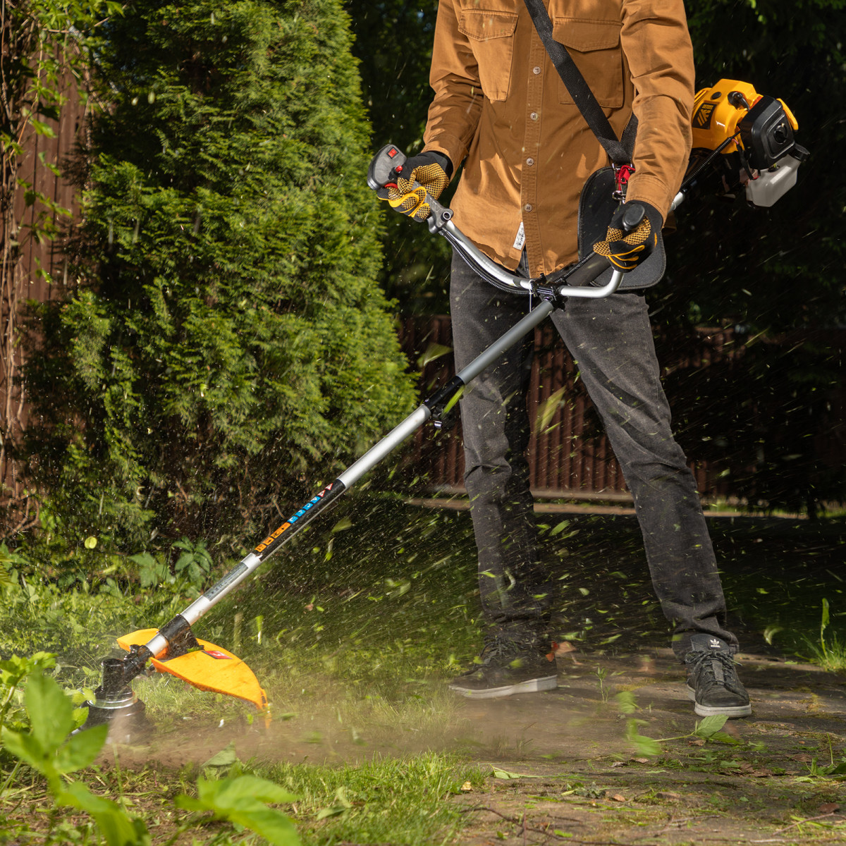 - Комфортное использование — благодаря малому весу триммера 7,6 кг, системе гашения вибраций, сбалансированности и удобному управлению даже длительная работа не вызывает дискомфорт.