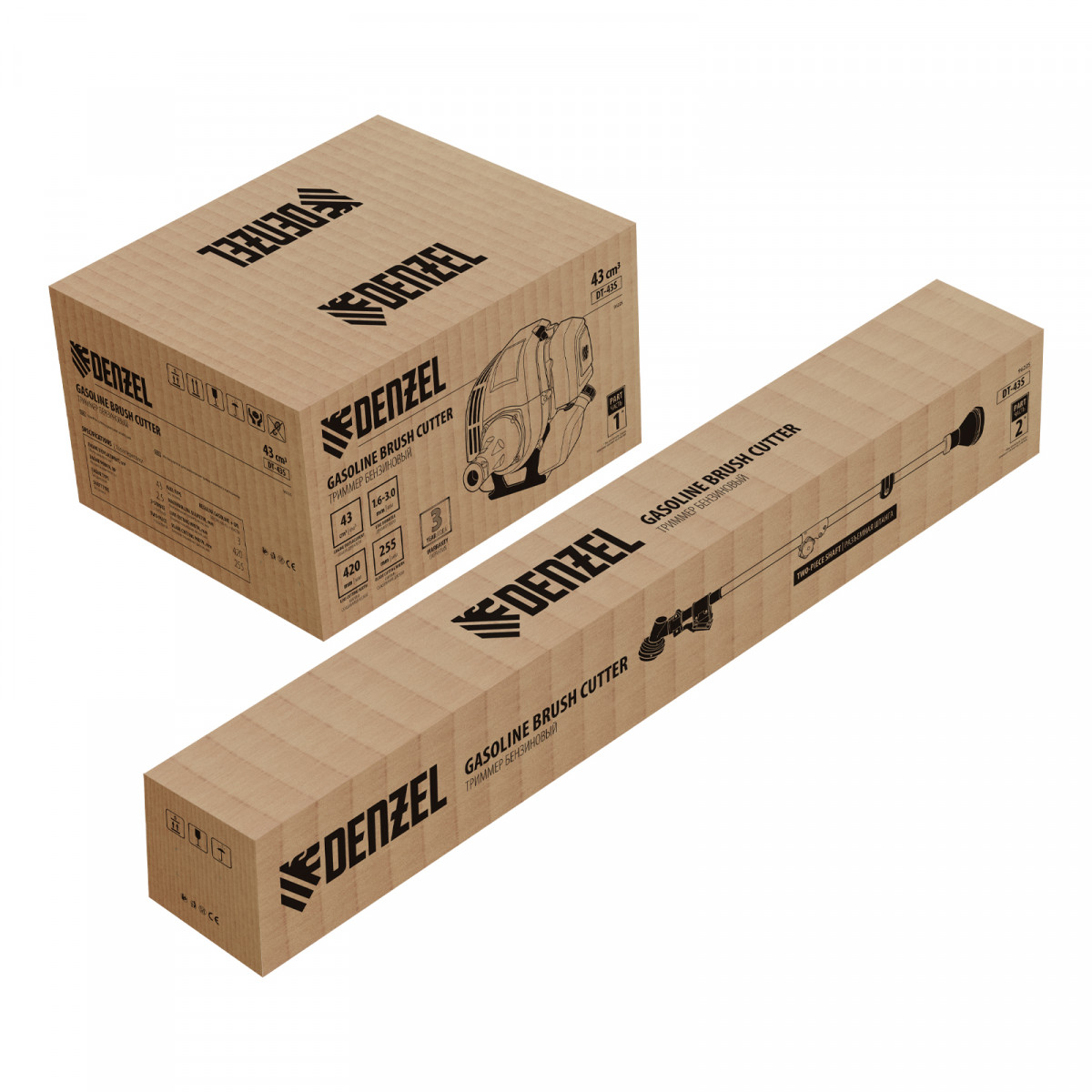 Бензиновый триммер Denzel DT-43S 96225 с двигателем объемом 43 см3 и мощностью 2,5 л.с., с разъемной штангой, состоит из 2 частей. Используется для подравнивания газона, скашивания травы всех типов, в том числе с жесткими древовидными стеблями (полыни, крапивы, лебеды, борщевика), а также срезания кустарника и молодых побегов деревьев с диаметром стволов до 10 мм. Это оптимальный вариант для работы в труднодоступных местах: вокруг насаждений, вдоль садовых дорожек, возле стен дома и т. д.,Мощный двухтактный двигатель обеспечивает высокую частоту вращения оснастки — 9500 об/мин. Ширина скашивания диском составляет 25,5 см, леской — 42 см. Поэтому можно обработать большой участок за короткое время.