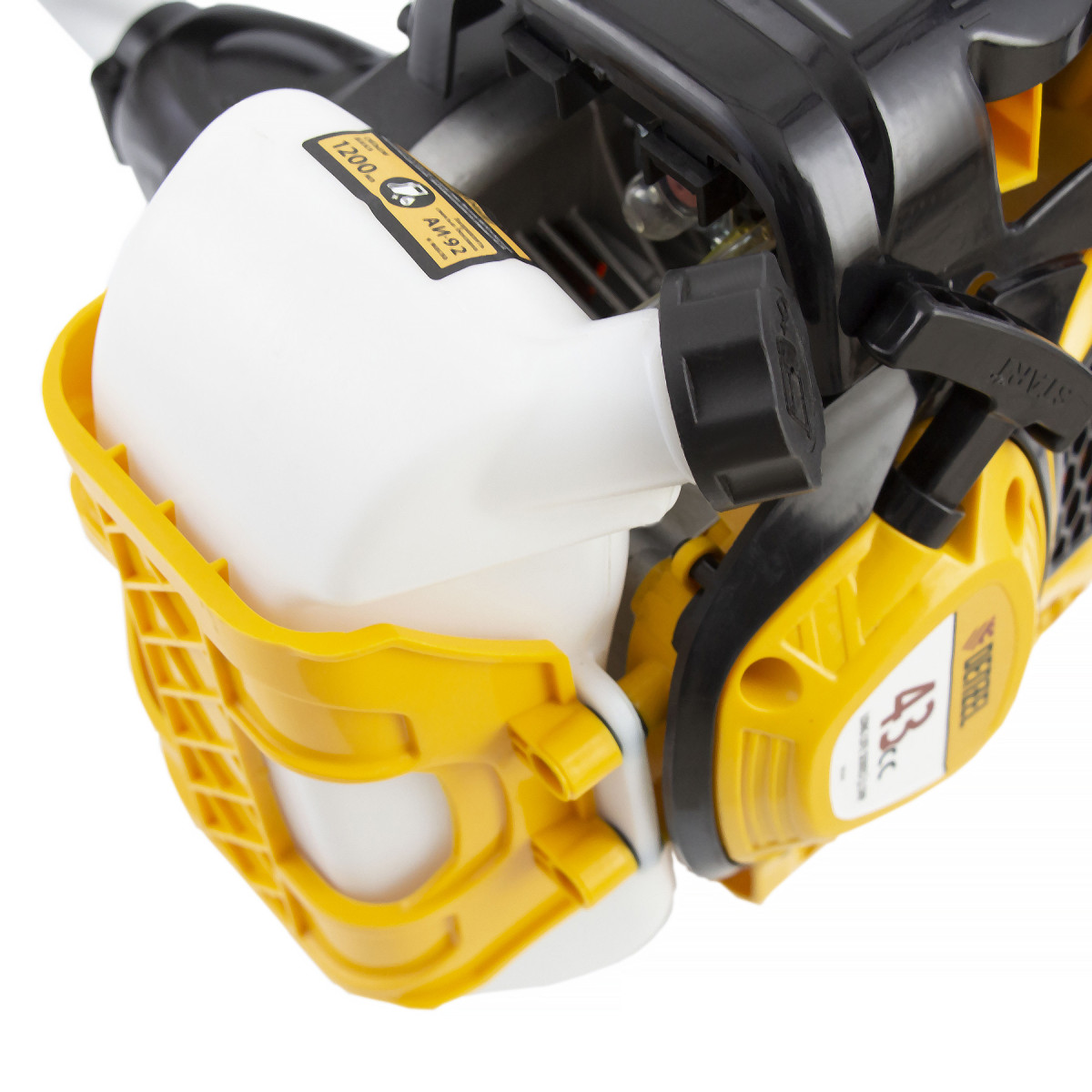 - Удобное приготовление топливной смеси — бензин и смазочное масло смешиваются в дозаторе (входит в комплект) и заливаются в бак.
