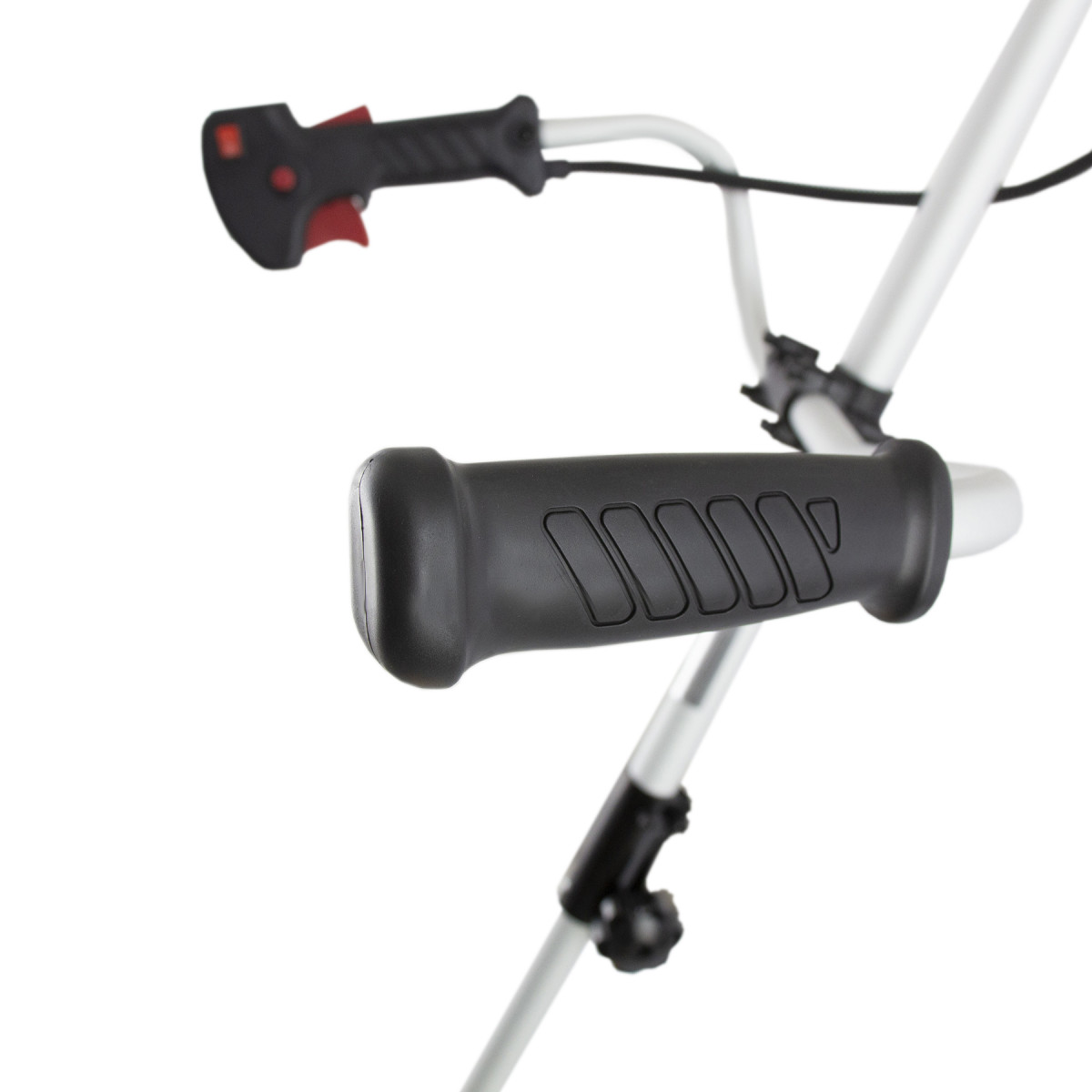 - Эргономичность — велосипедная рукоятка имеет асимметричную форму, поэтому триммер удобно удерживать и направлять.