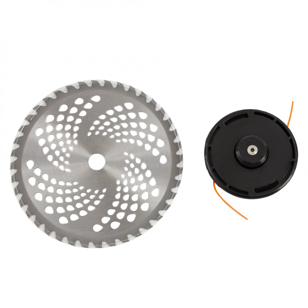 - Дополнительные возможности — можно приобрести и установить на триммер диски Denzel 96323, 96325 для быстрого удаления растительности с жесткими стеблями (полыни, крапивы, лебеды), 96328 для скашивания молодых побегов кустарника диаметром до 3 мм.