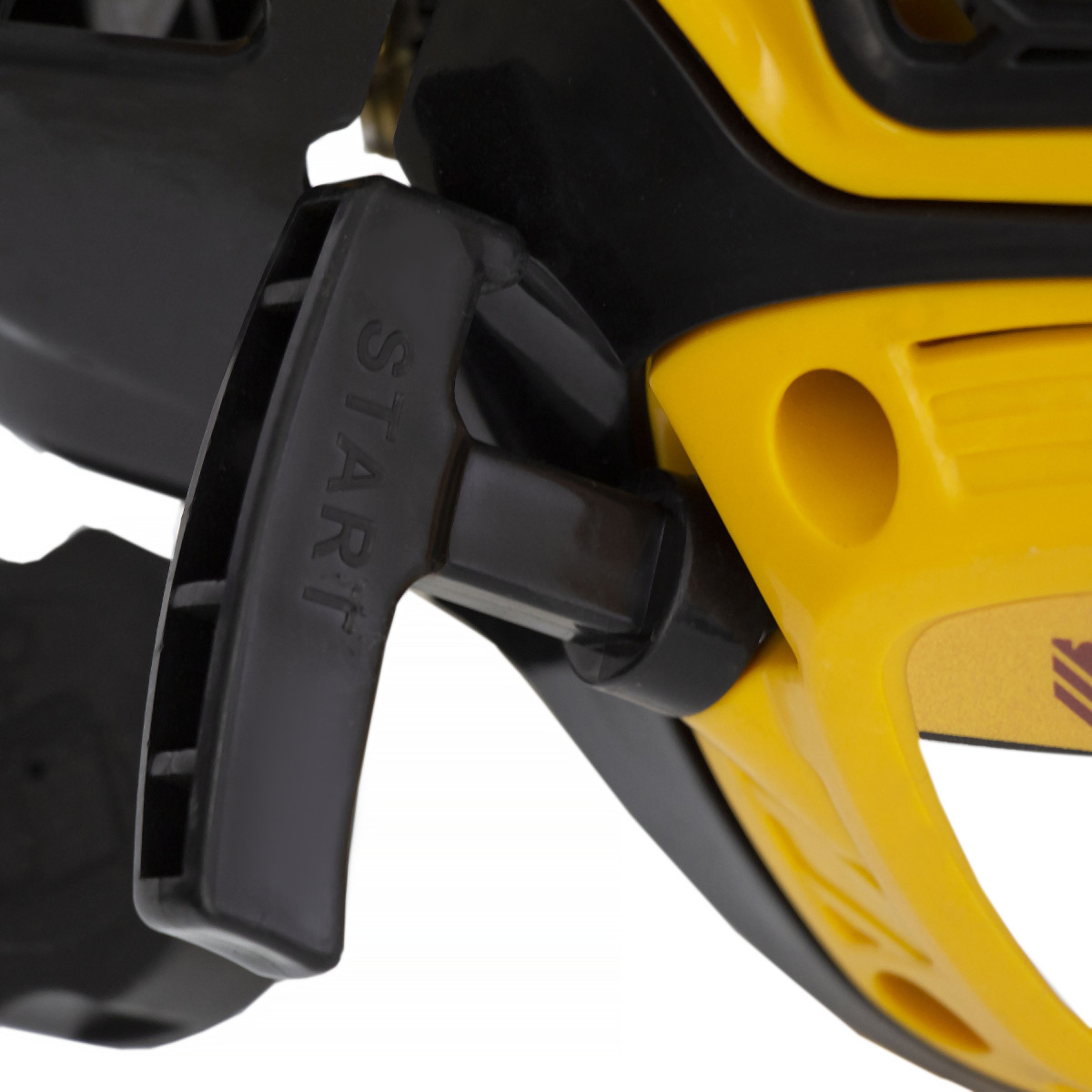 - Безопасность — клавиша блокировки газа предотвращает случайный запуск двигателя, прочный кожух исключает вылетание травы, веток и камней на пользователя.