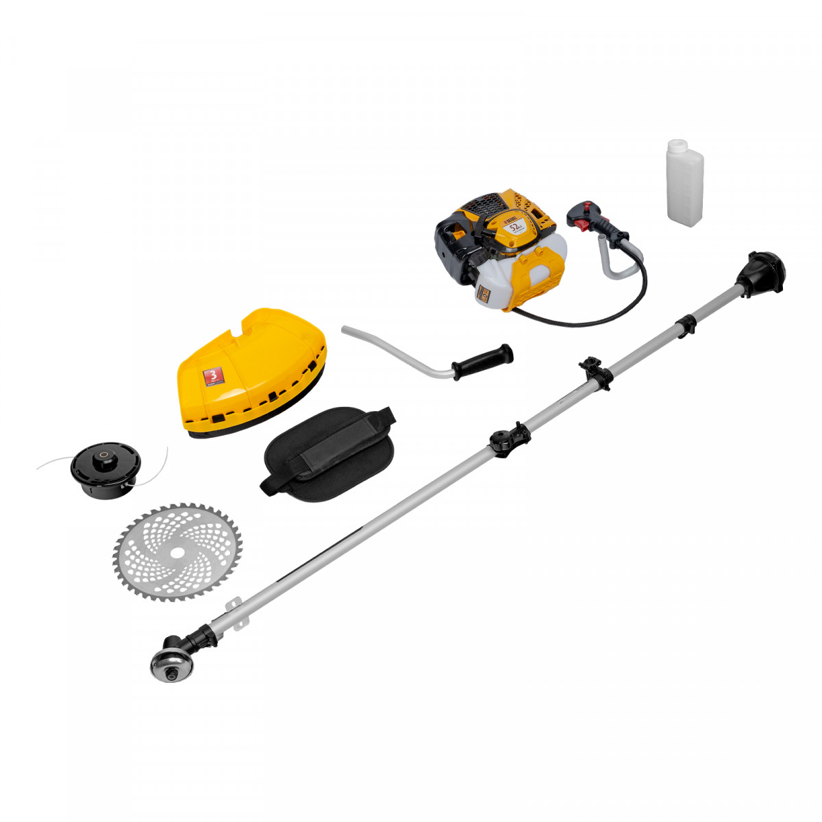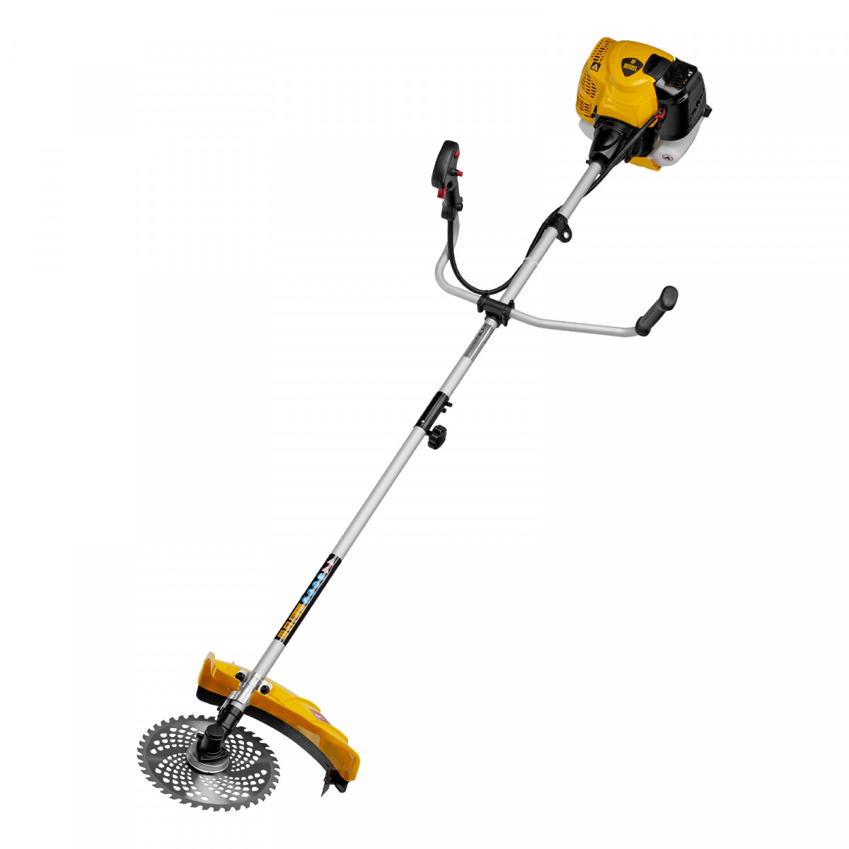 Бензиновый триммер Denzel DTL-52S 96266 с разъемной штангой, состоящей из 2 частей, оснащен 2-тактным двигателем объемом 52 см3 и предназначен для стрижки газона, скашивания травы всех типов, в том числе с жесткими древовидными стеблями (полыни, крапивы, лебеды, борщевика), а также срезания кустарника и молодых побегов деревьев с диаметром стволов до 10 мм. Усиленная катушка с леской и пильный диск обеспечивают ширину скашивания 42 и 25,5 см. Инструмент не требует подключения к электросети, поэтому подходит для работы с влажной травой и может использоваться на отдаленных от дома участках.