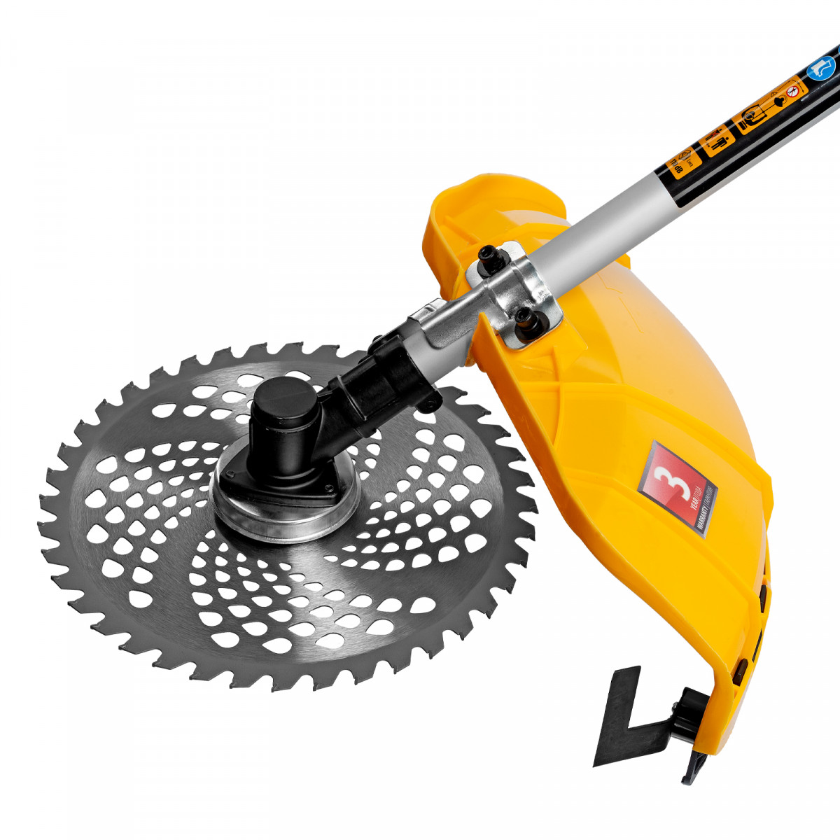 - Легкая установка оснастки — триммер удобен для обработки участков с разным типом растительности.