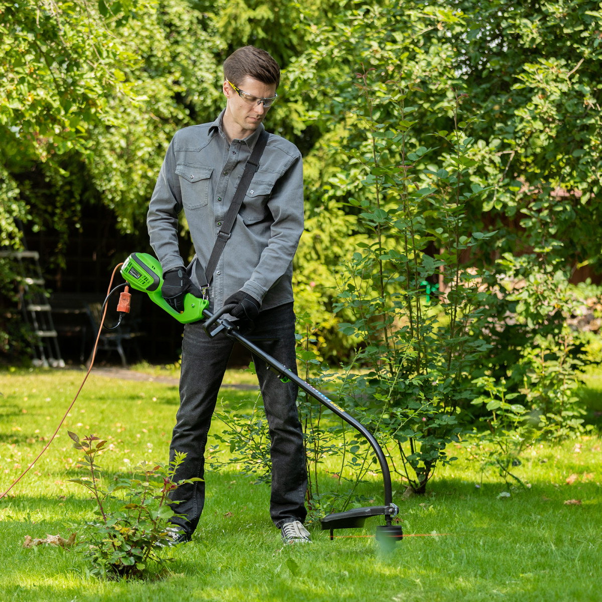 Электрический триммер Сибртех ЭКИ-1100 96631 мощностью 1100 Вт, с разборной штангой, предназначен для скашивания мягкой газонной травы — для этого предусмотрена катушка с леской, обеспечивающая ширину прохода 350 мм. Изогнутая штанга позволяет легко обрабатывать участки даже в труднодоступных местах: вдоль заборов, стен, тротуаров и вокруг деревьев. Триммер не требует приготовления топливной смеси и заправки, не нуждается в постоянном техническом обслуживании, поэтому с ним справится даже неопытный пользователь.