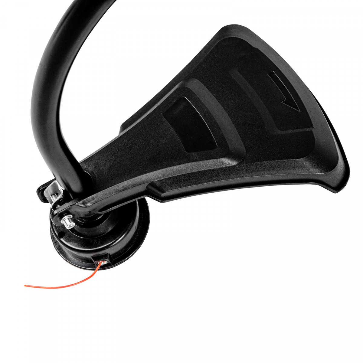 - Эргономичность — плечевой ремень снижает нагрузку на руки, а D-образная ручка обеспечивает надежный хват и облегчает управление триммером.