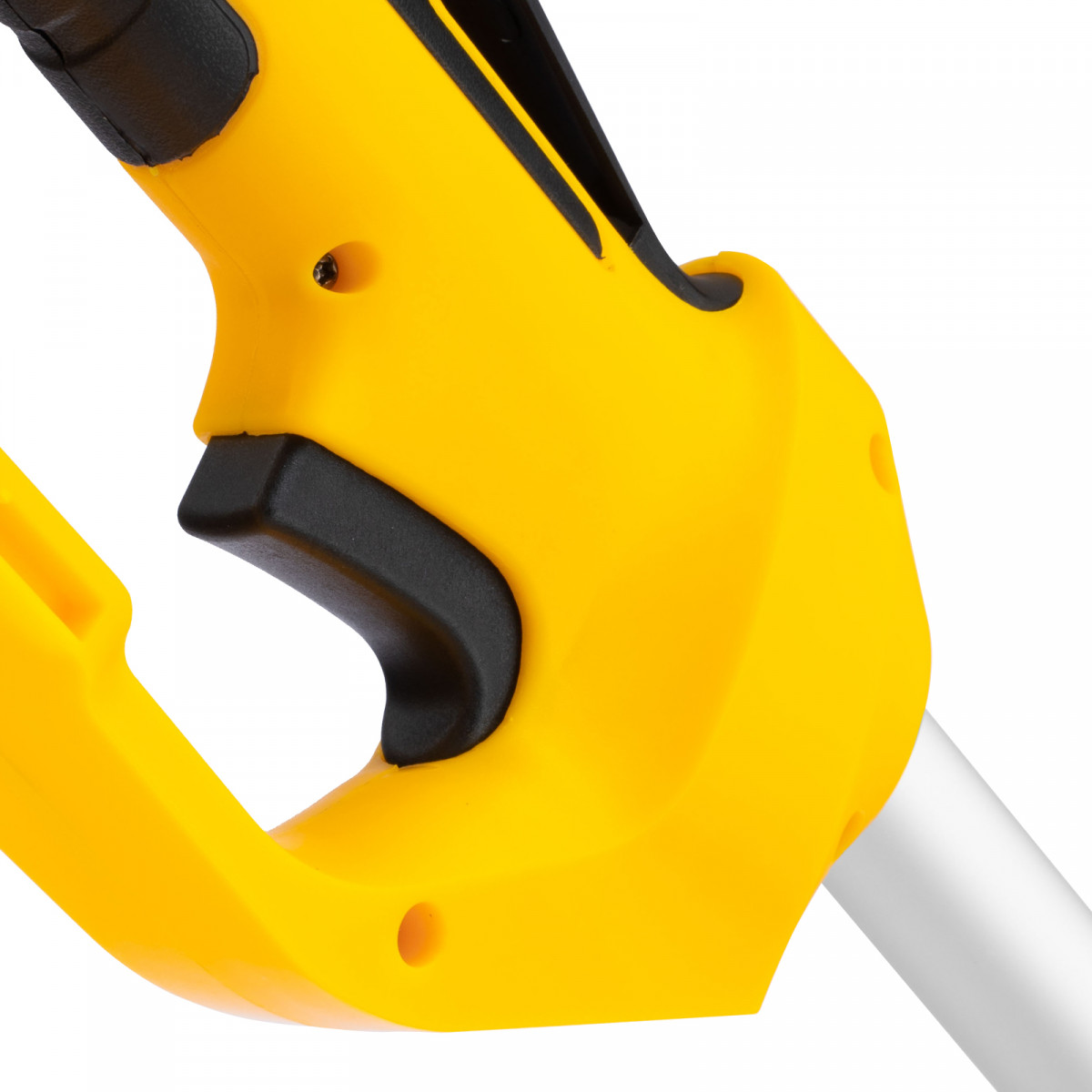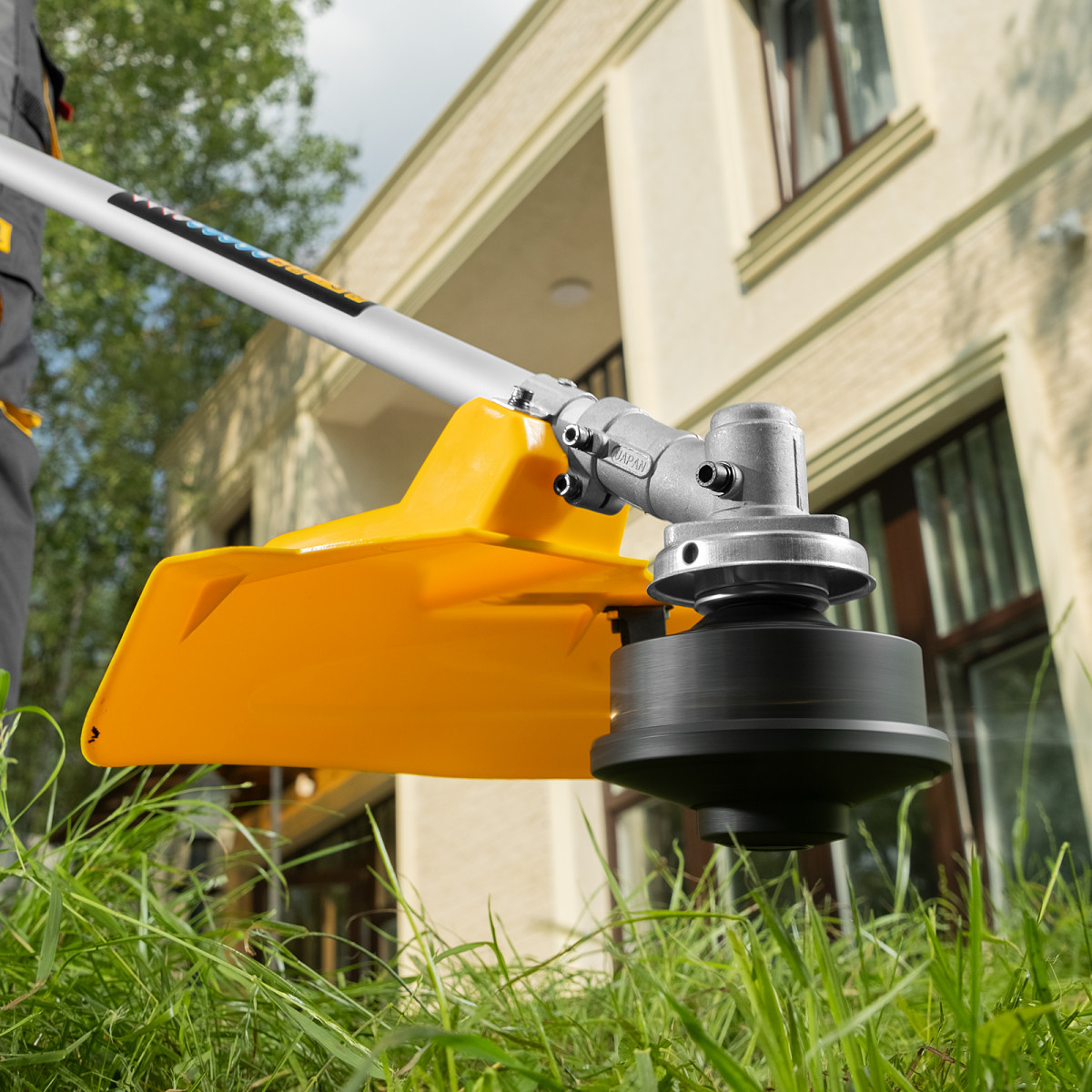 - Удобное управление — благодаря плечевому ремню, регулируемому кольцу крепления и D-образной ручке триммер легко удерживать и направлять.