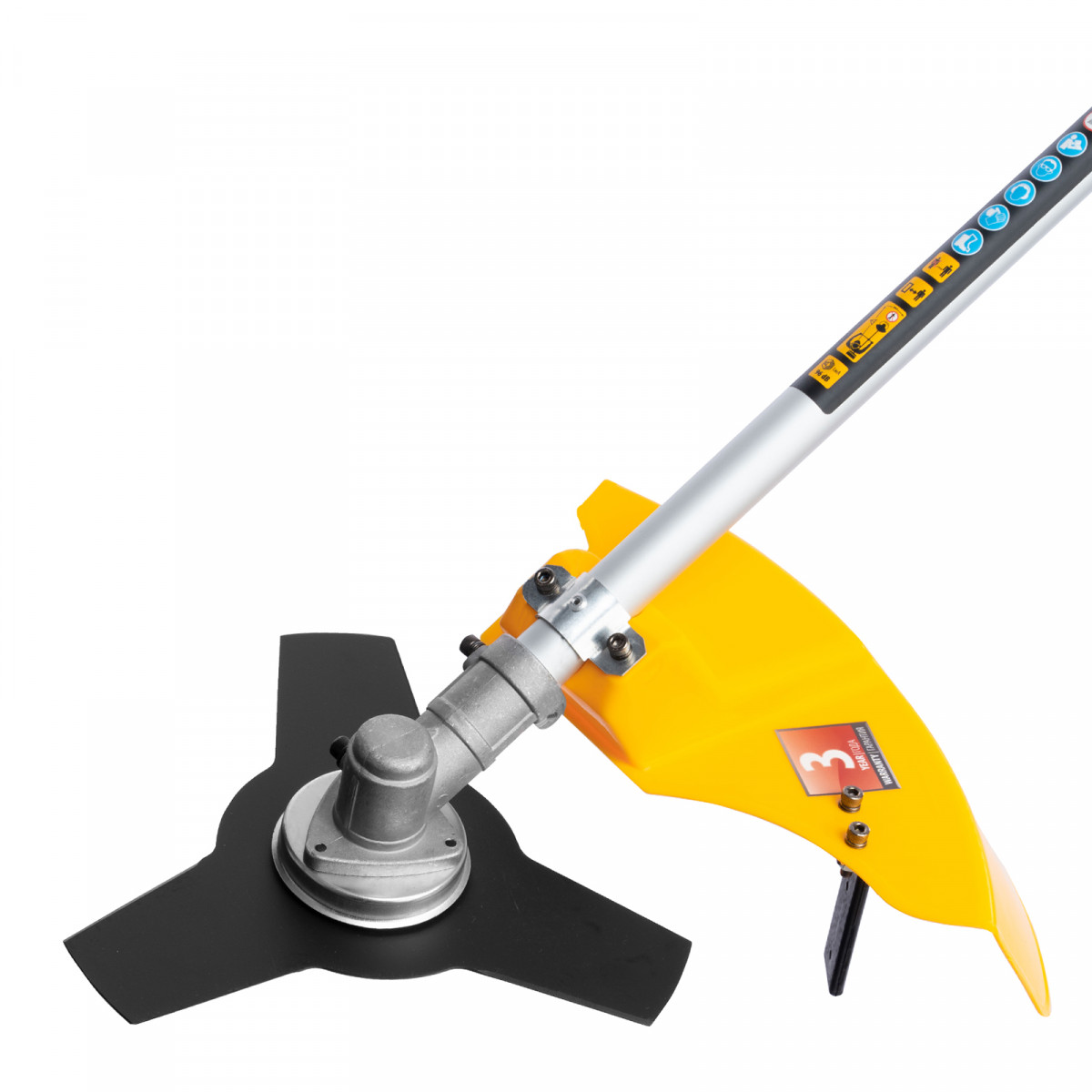 - Дополнительные возможности — можно приобрести и установить на триммер диск Denzel 96323 с шириной скашивания 230 мм для быстрого удаления растительности с жесткими стеблями (полыни, крапивы, лебеды), 96328 для скашивания молодых побегов кустарника диаметром до 3 мм, 96340 для срезания борщевика, кустарника и молодых побегов деревьев с диаметром стволов до 10 мм.