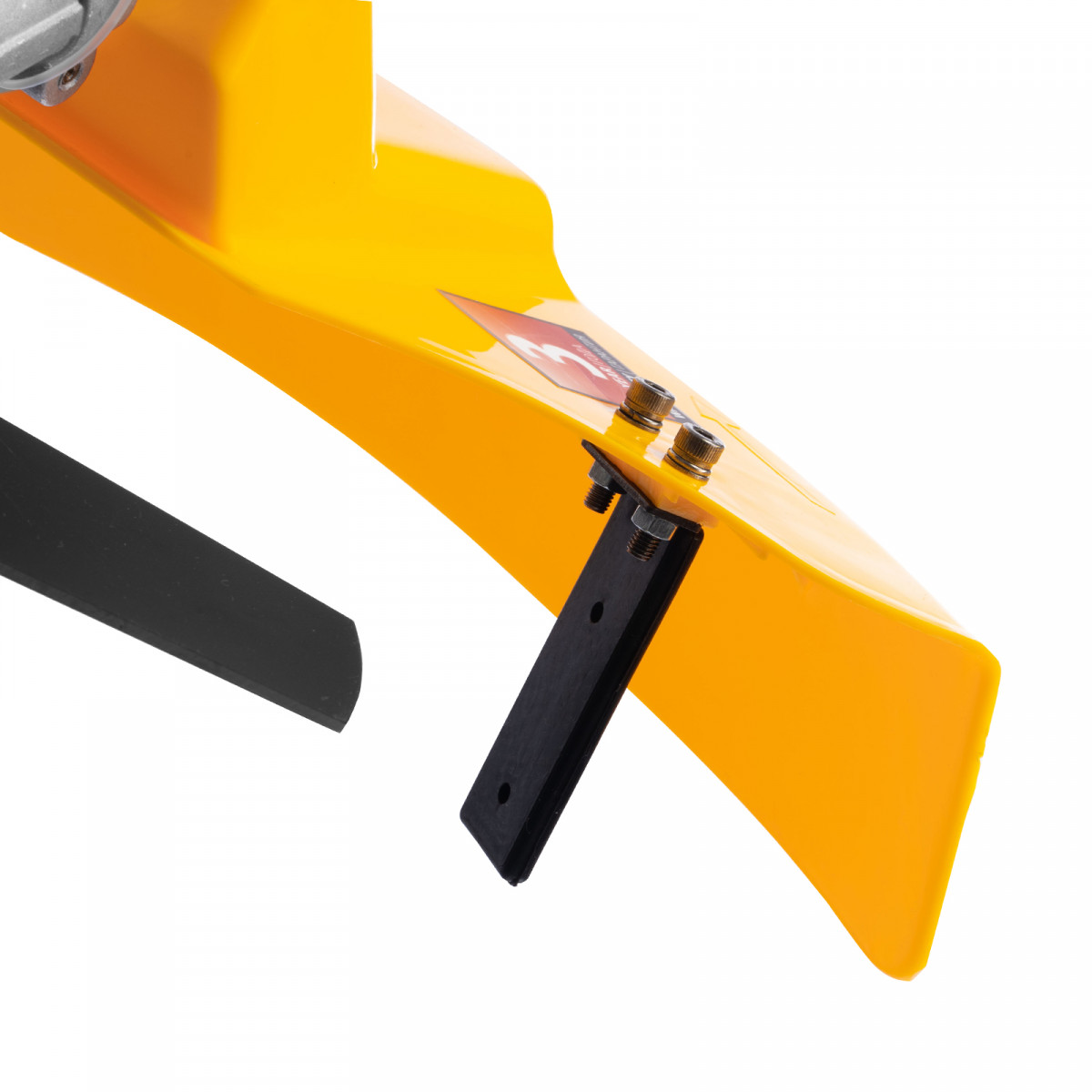 - Безопасность — специальный кожух защищает пользователя от вылета травы, камней и щепок.