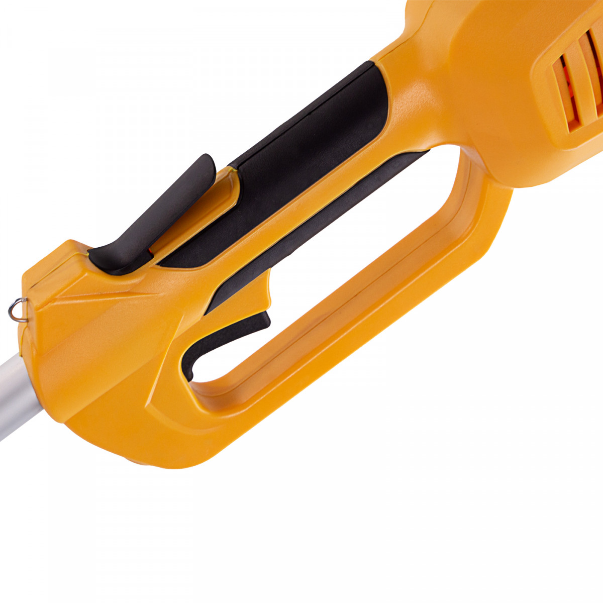 • Снижение нагрузки на спину — наплечный ремень равномерно распределяет вес садового электротриммера, что уменьшает усталость при длительной работе.