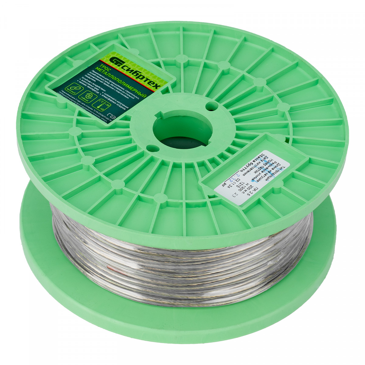 Трос металлополимерный прозрачный ПР-2.5, толщина 2.5 мм, катушка 200 метров Сибртех