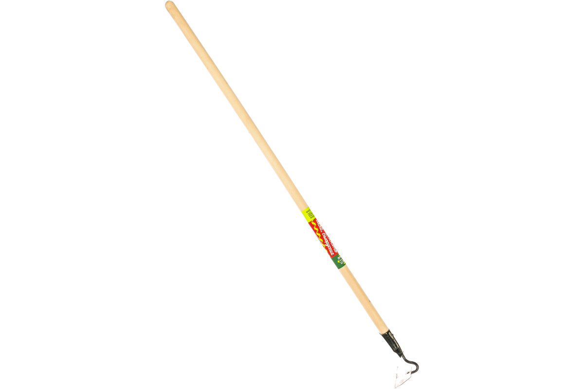 Тяпка с черенкомпредставляет собой удобный инструмент для культивации и обработки почвы. Для увеличения срока службы рабочая часть выполнена из нержавеющей стали. Удобный березовый черенок при правильном хранении также прослужит очень долго. Отшлифованная поверхность исключает появление заноз. Трапециевидная форма лезвия наиболее эффективна.