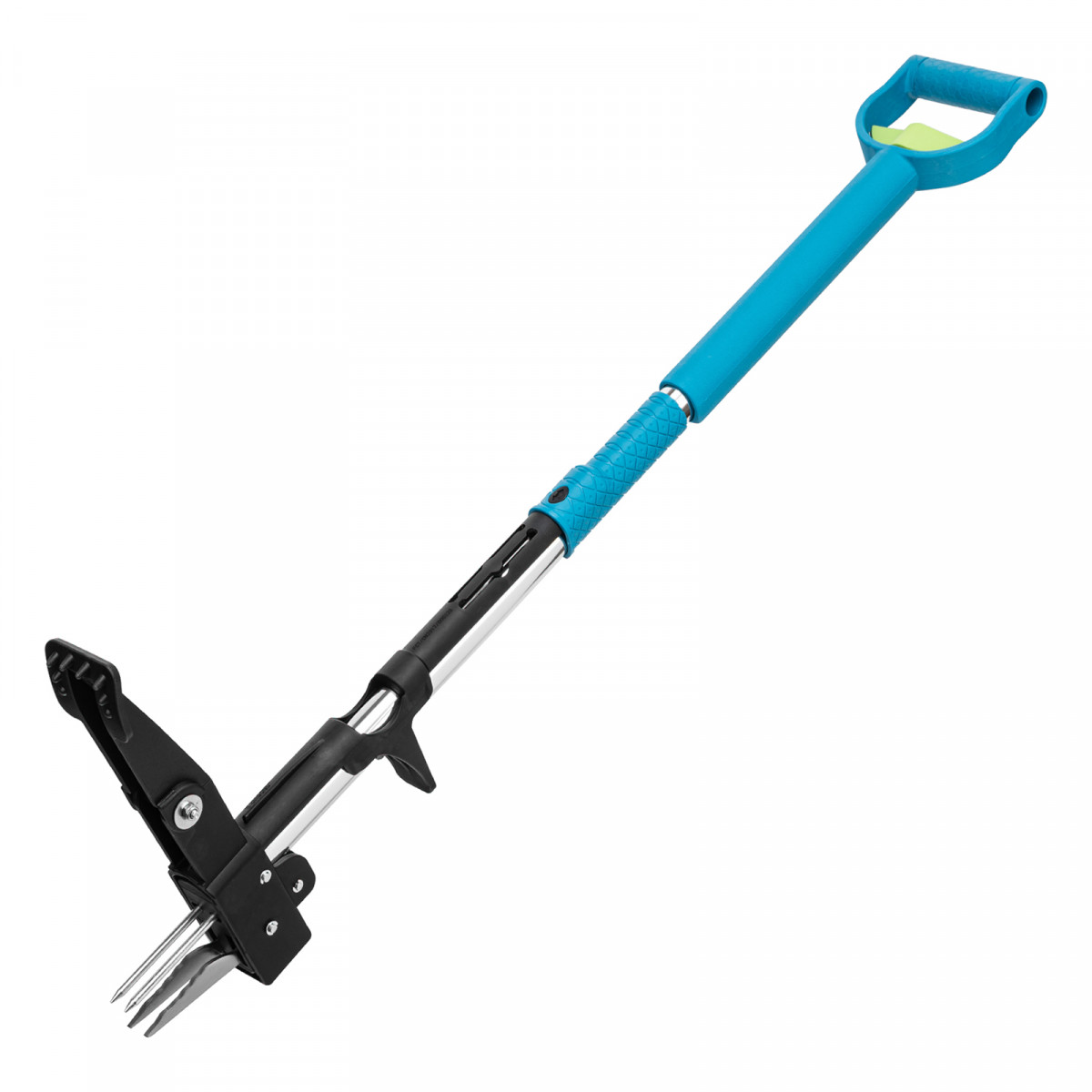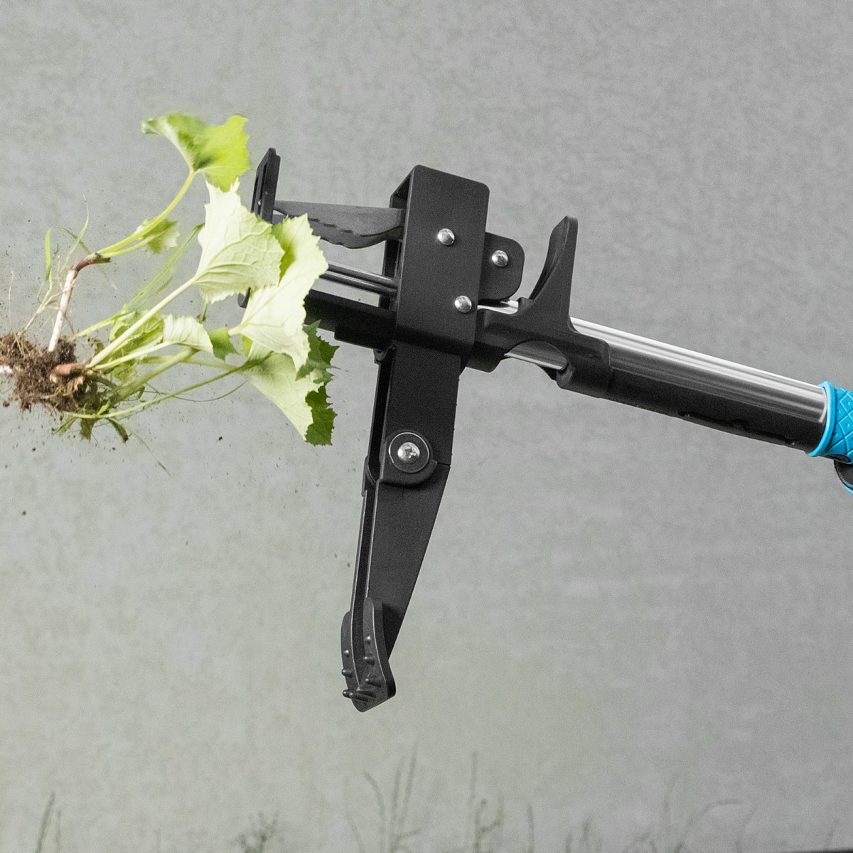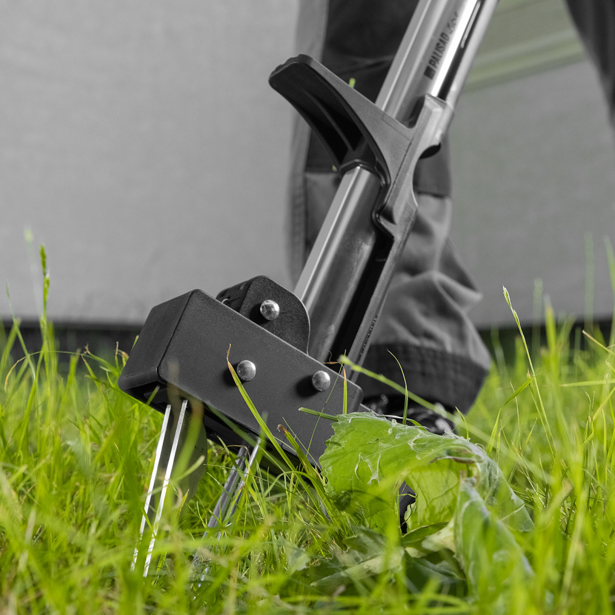 - Удобная работа — упор для ноги облегчает введение удалителя в даже в твердую почву, а благодаря педали для размыкания игл не нужно наклоняться, чтобы удалить сорняк.