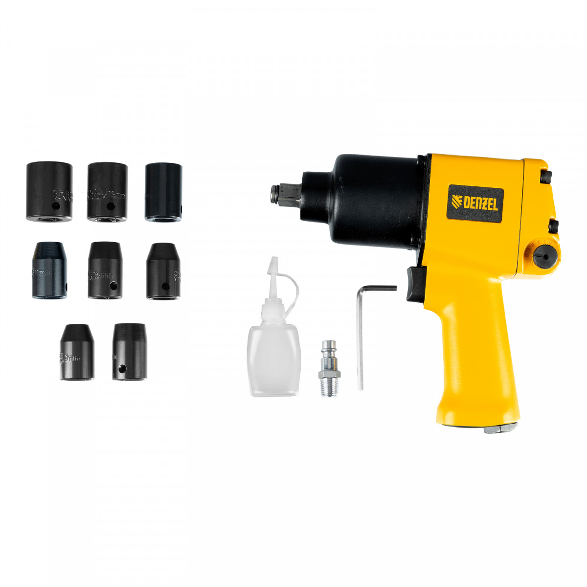 Ударный пневмогайковерт IW860+набор головок, 1/2", 7000 об/мин, 868 Нм Denzel
