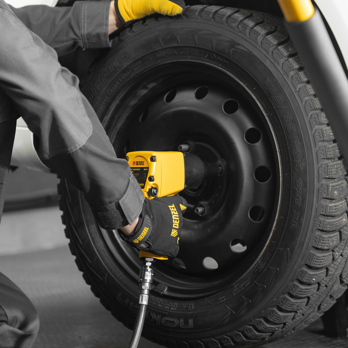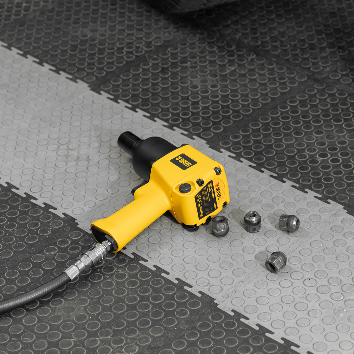 • Простая подготовка к работе — гайковерт подключается к компрессору при помощи быстроразъемного соединения.