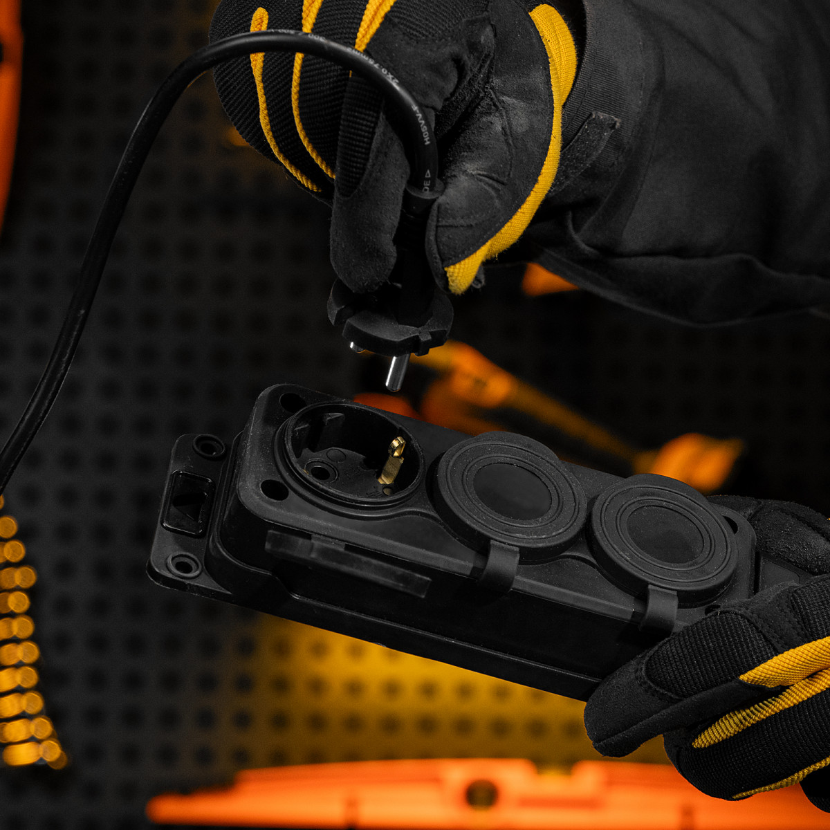 - Высокая степень защиты — удлинитель можно использовать даже во время выпадения осадков.