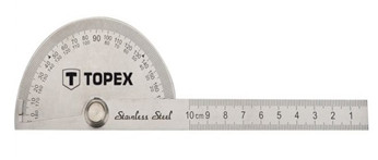 Угломер TOPEX с линейкой длиной 100 мм. Это измерительный инструмент, предназначенный для выполнения механических работ, а также работ, выполняемых мастерами-любителями. Изготовлен из высококачественной нержавеющей стали.