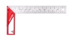 Угольник 300 мм, полотно из нержавеющей стали. Убирающаяся планка для точной фиксации. Двусторонняя литая рукоятка с направляющими в 30°. Гравировка и отверстия для отметки углов 10, 15, 22.5, 30, 45, 50 и 60°. Отверстия в полотне через каждый см. для отметки карандашом/маркером.