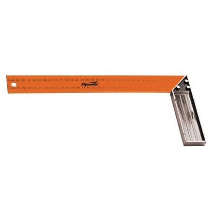 Металлический угольник с окрашенной поверхностью и двухсторонней разметкой полотна. Полотно угольника имеет двухстороннюю разметку. Предназначен для разметки и проверки прямых углов, а также для проверки угла 45 градусов при обработке и сборке изделий.